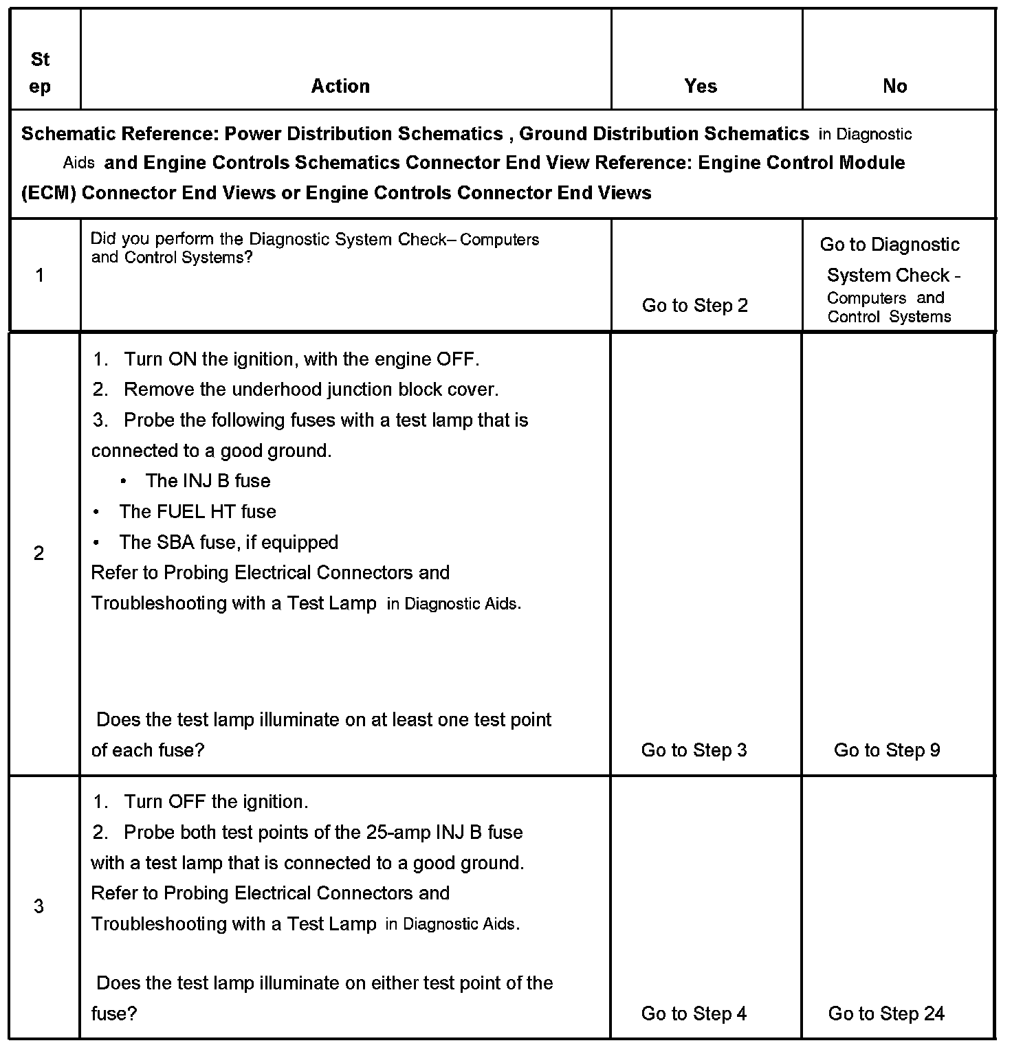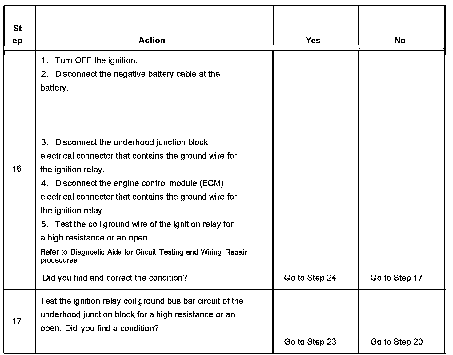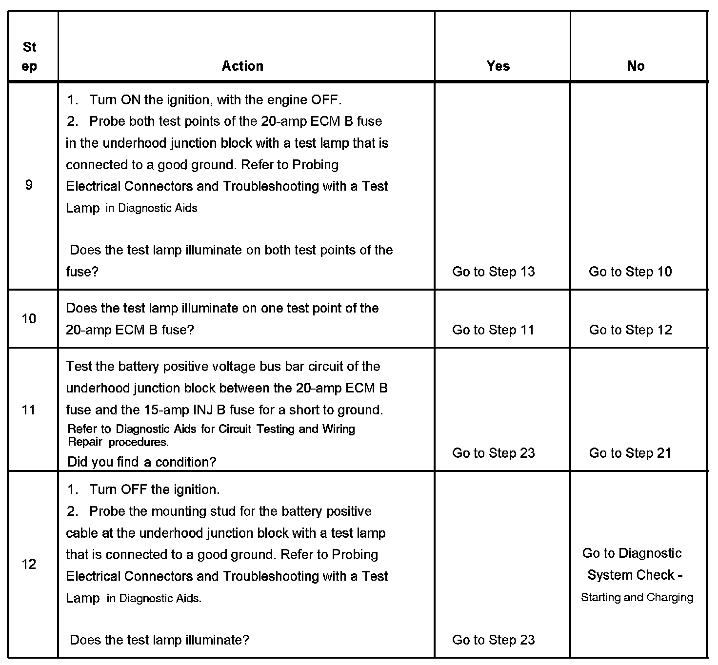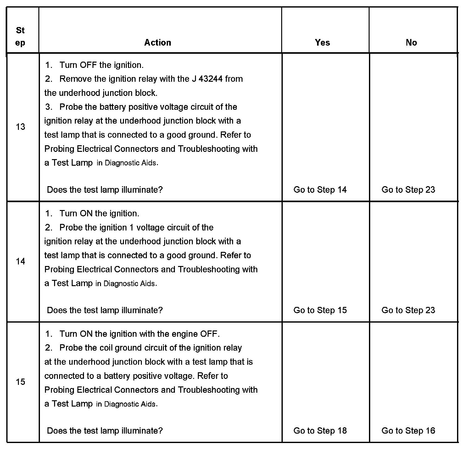 The ignition relay table assumes that the vehicle battery is fully charged. Refer to Battery Inspection/Test in Starting and Charging.