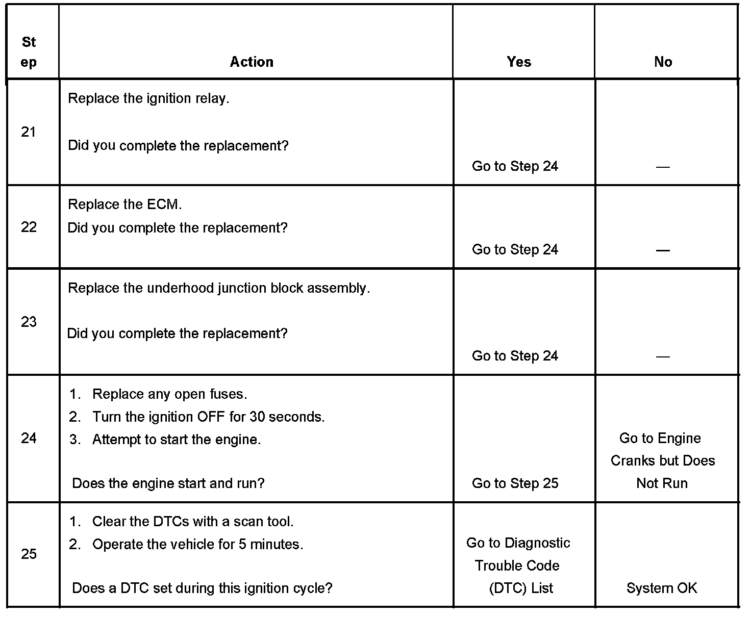 If the ignition relay fails to close, the engine will crank but will not run. The class 2 communications will be available with the use of a scan tool.