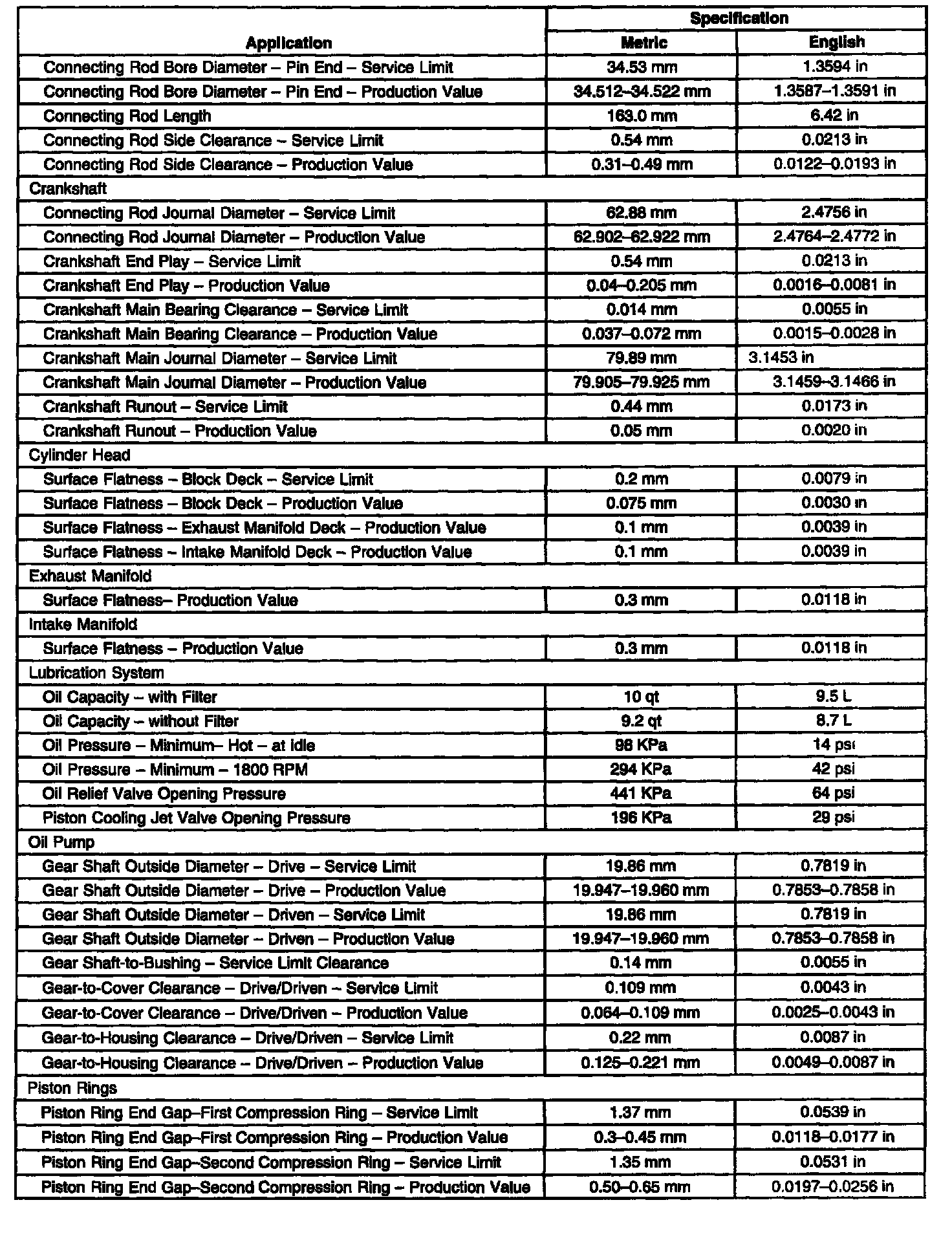 Engine Mechanical Specifications 4 Of 4: