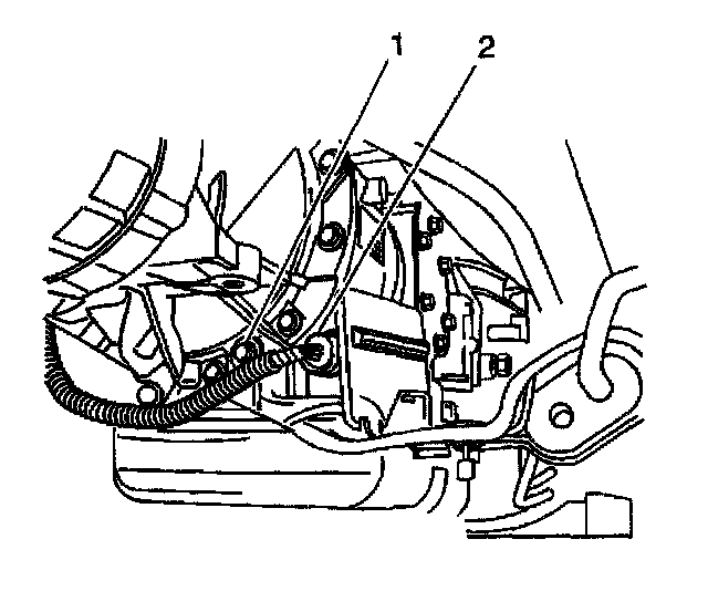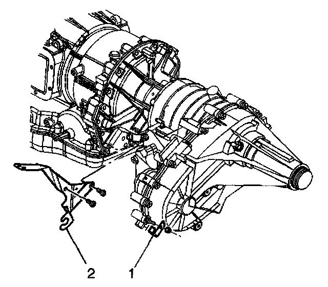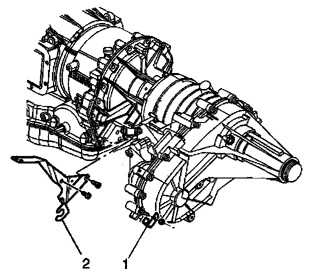 19. Remove the shift cable bracket (2) from the transmission.