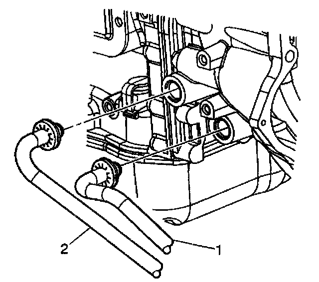 28. Disconnect the transmission oil cooler lines (1, 2) from the transmission.