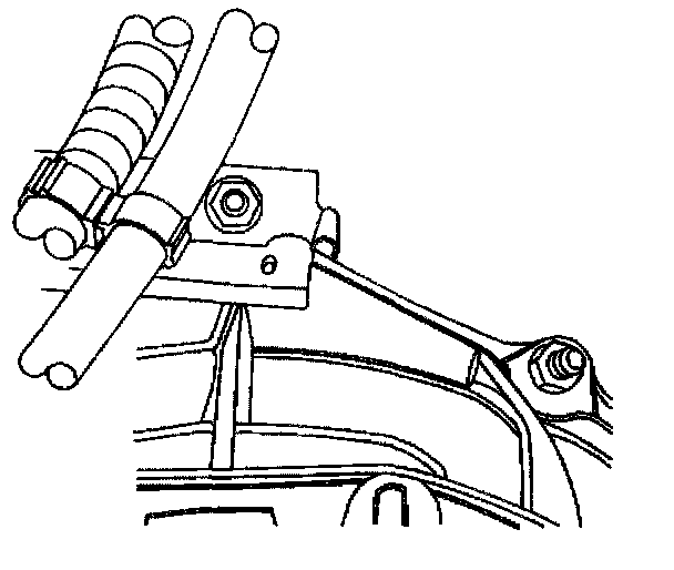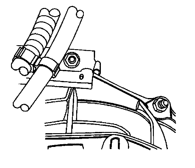 8. Install the wire harness/vent tube retaining bracket to the stud on the converter housing. Install the nut to the stud that retains the bracket.