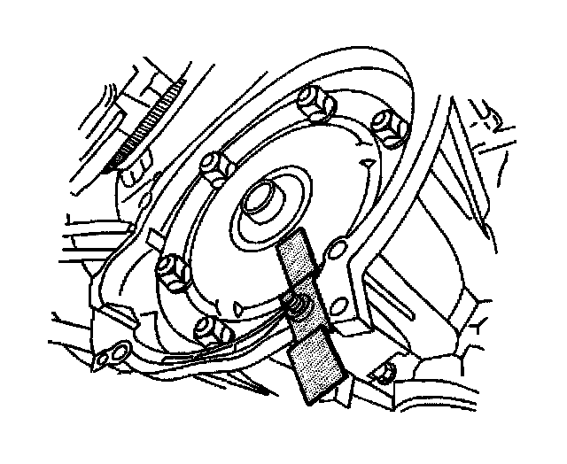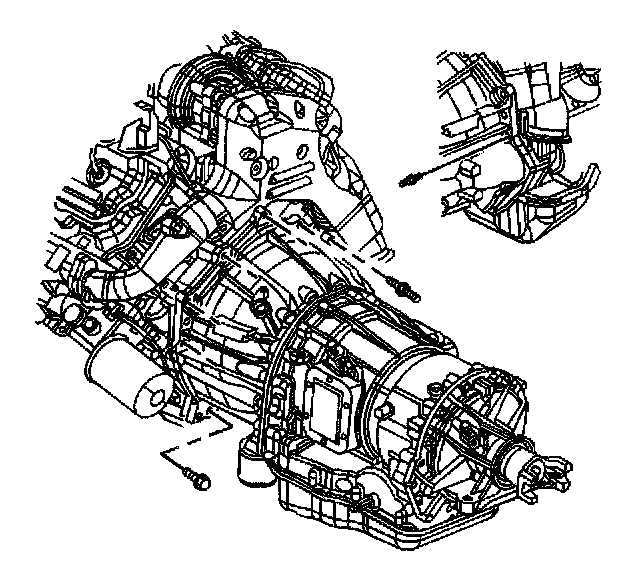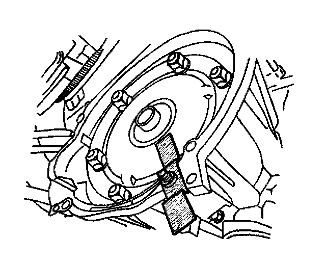 Notice: The torque converter bolts can be accessed only through the starter motor opening. Remove the torque converter bolts before removing the transmission support in order to ensure that the transmission is supported properly during this procedure. Failure to support the transmission properly may result in vehicle damage.