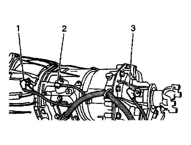 15. Connect the electrical connector to the output speed sensor (3). This sensor is located on the transfer case if the vehicle is equipped with 4WD, and will be connected during transfer case installation.