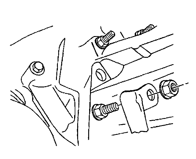 14. Remove the transmission support nuts and bolts.