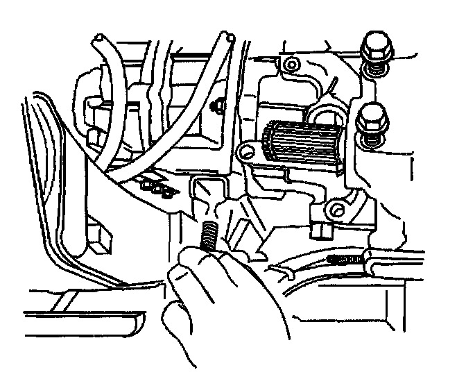 17. Install the fuel line bracket to the stud on the transmission converter housing.