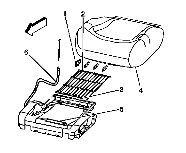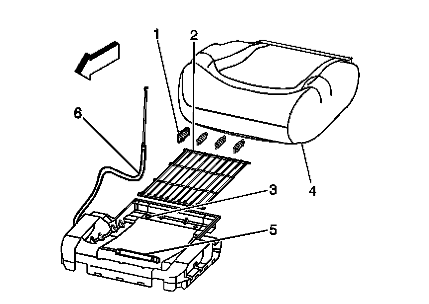 7. Connect the lumbar cable (6) underneath the seat cushion (disconnect the wire harness if equipped with power lumbar).