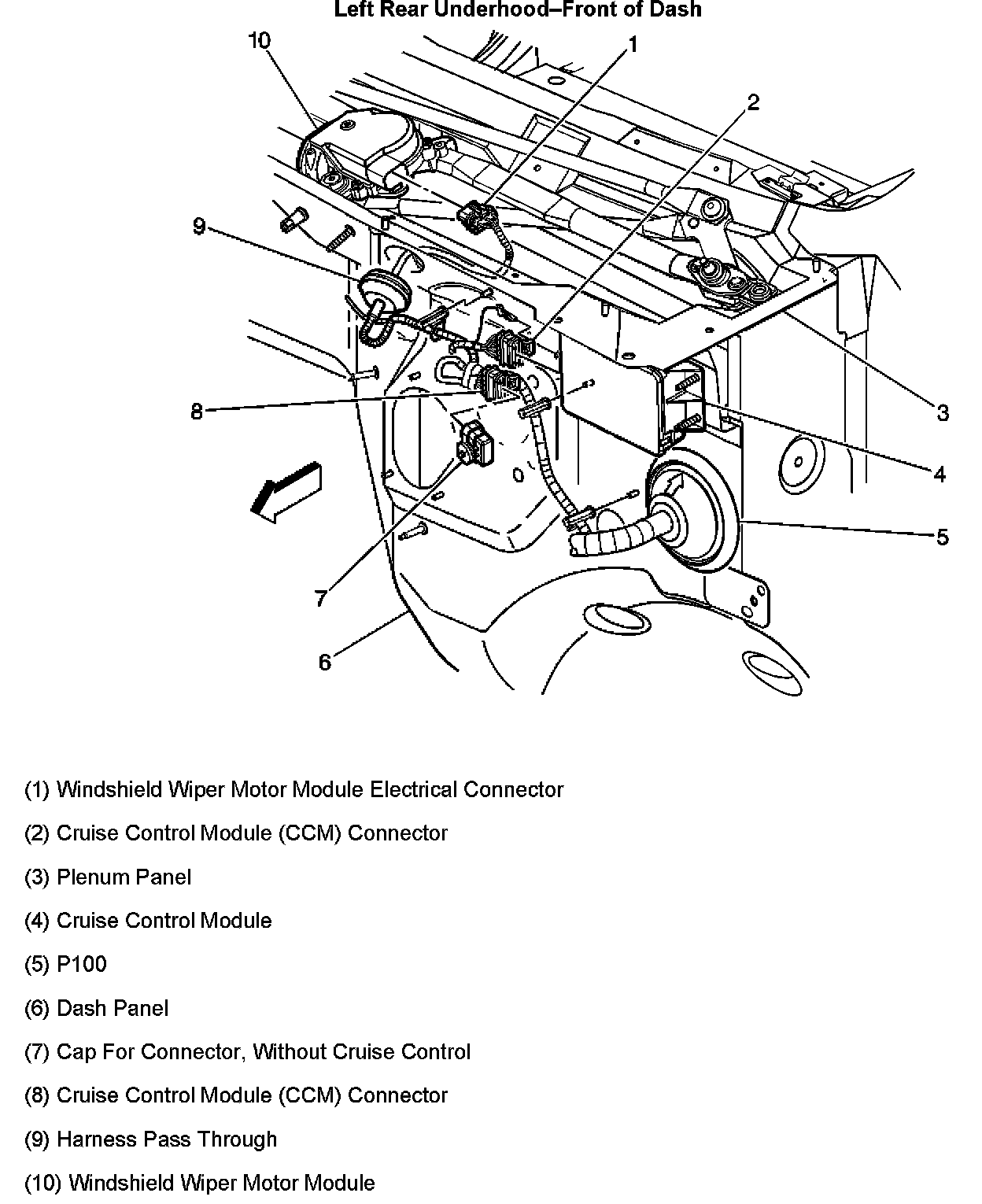 Left Rear Underhood-Front Of Dash: