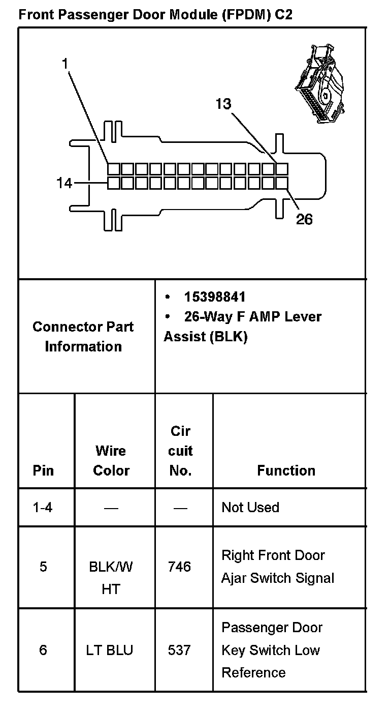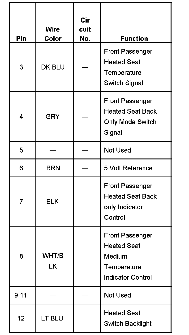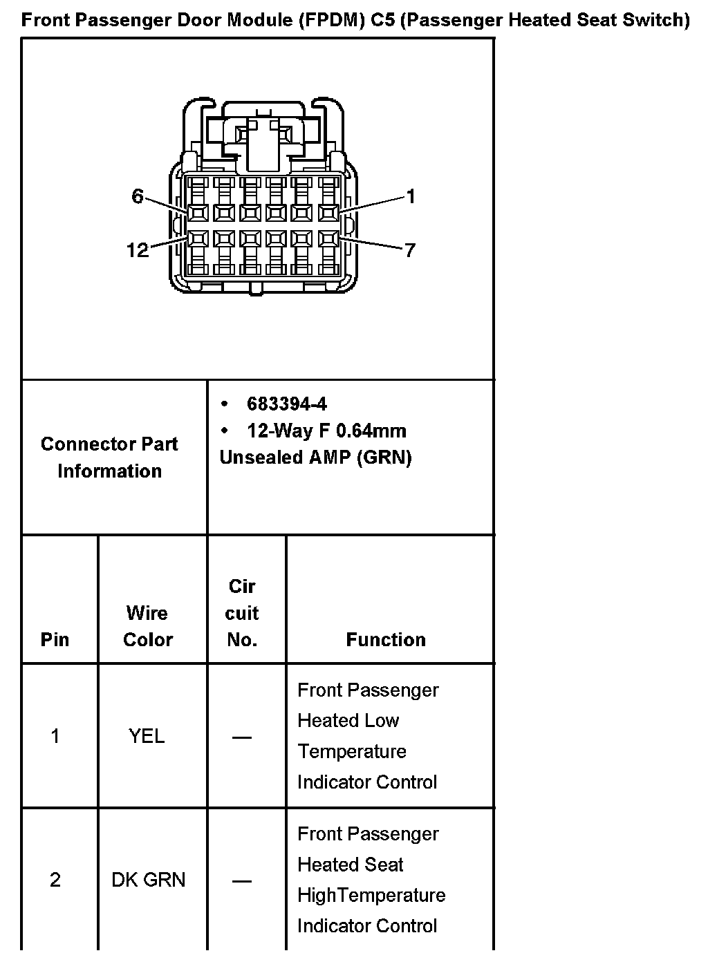 Front Passenger Door Module (FPDM) C5 (Passenger Heated Seat Switch) Part 2: