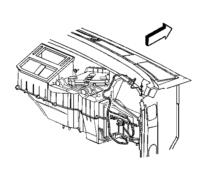 5. Remove the blower motor control processor (2) from the HVAC module (1).