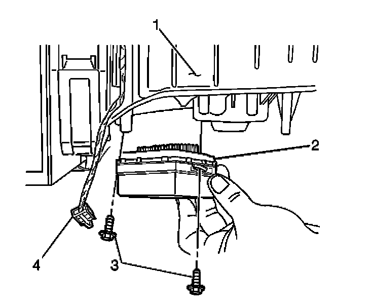 1. Install the blower motor control processor (2) to the HVAC module (1).