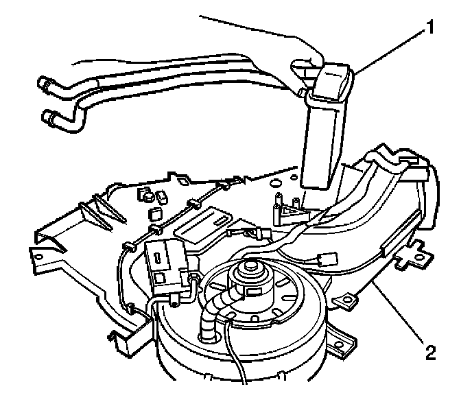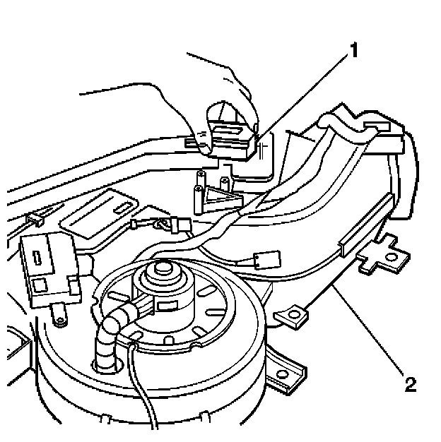 1. Install the heater core (1) to the auxiliary HVAC module.