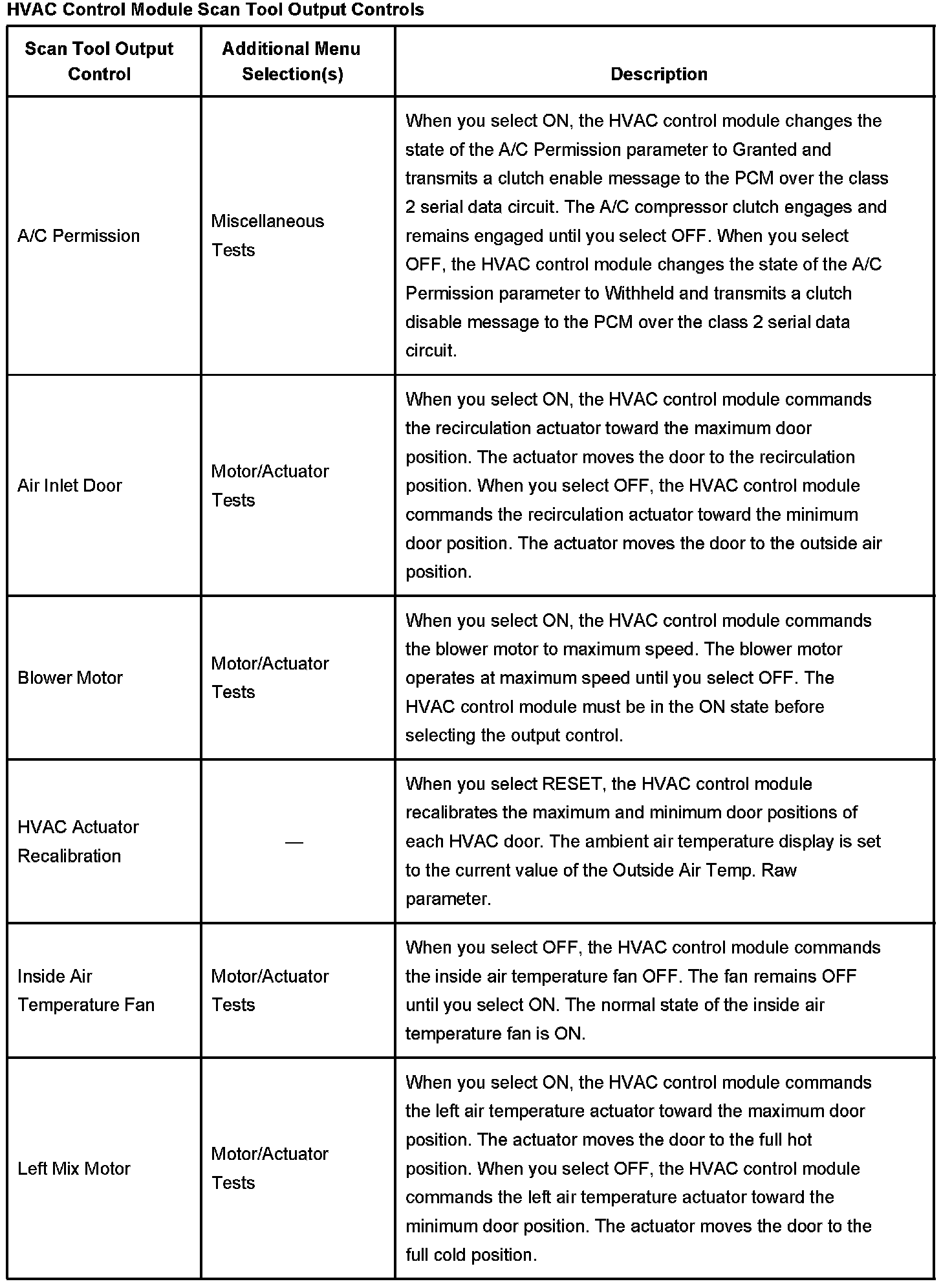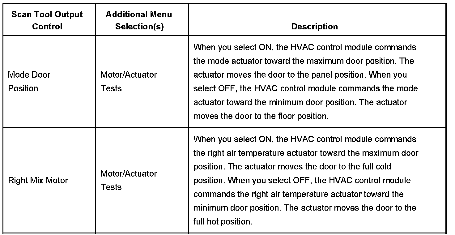 Scan Tool Output Controls - HVAC Control Module