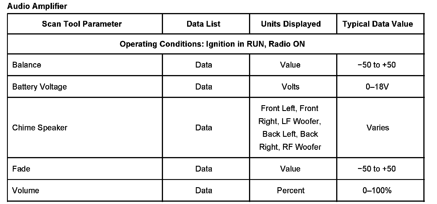 Scan Tool Data List - Audio Amplifier:
