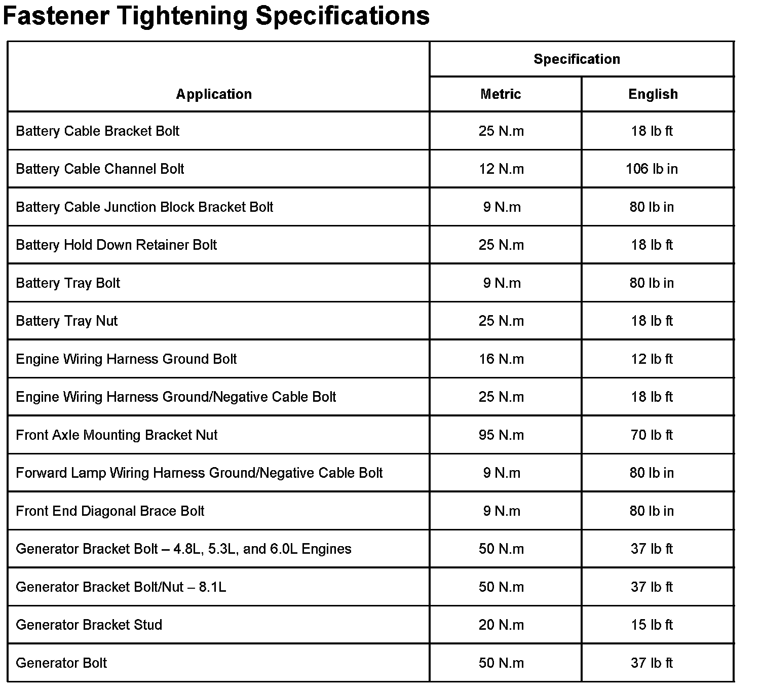 Fastener Tightening Specifications Part 1: