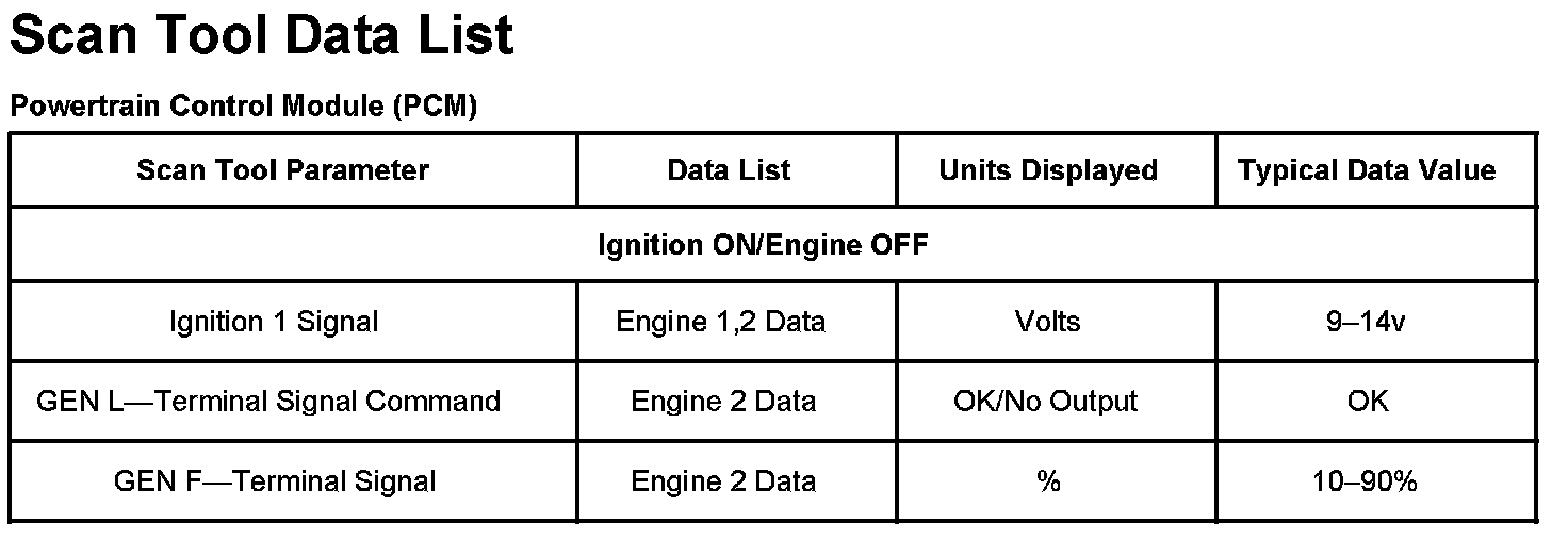 Scan Tool Data List - Powertrain Control Module (PCM):