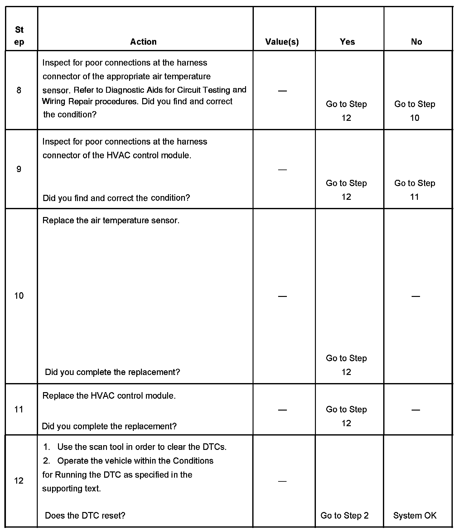 - The DTC will become history if the HVAC control module no longer detects a fault.