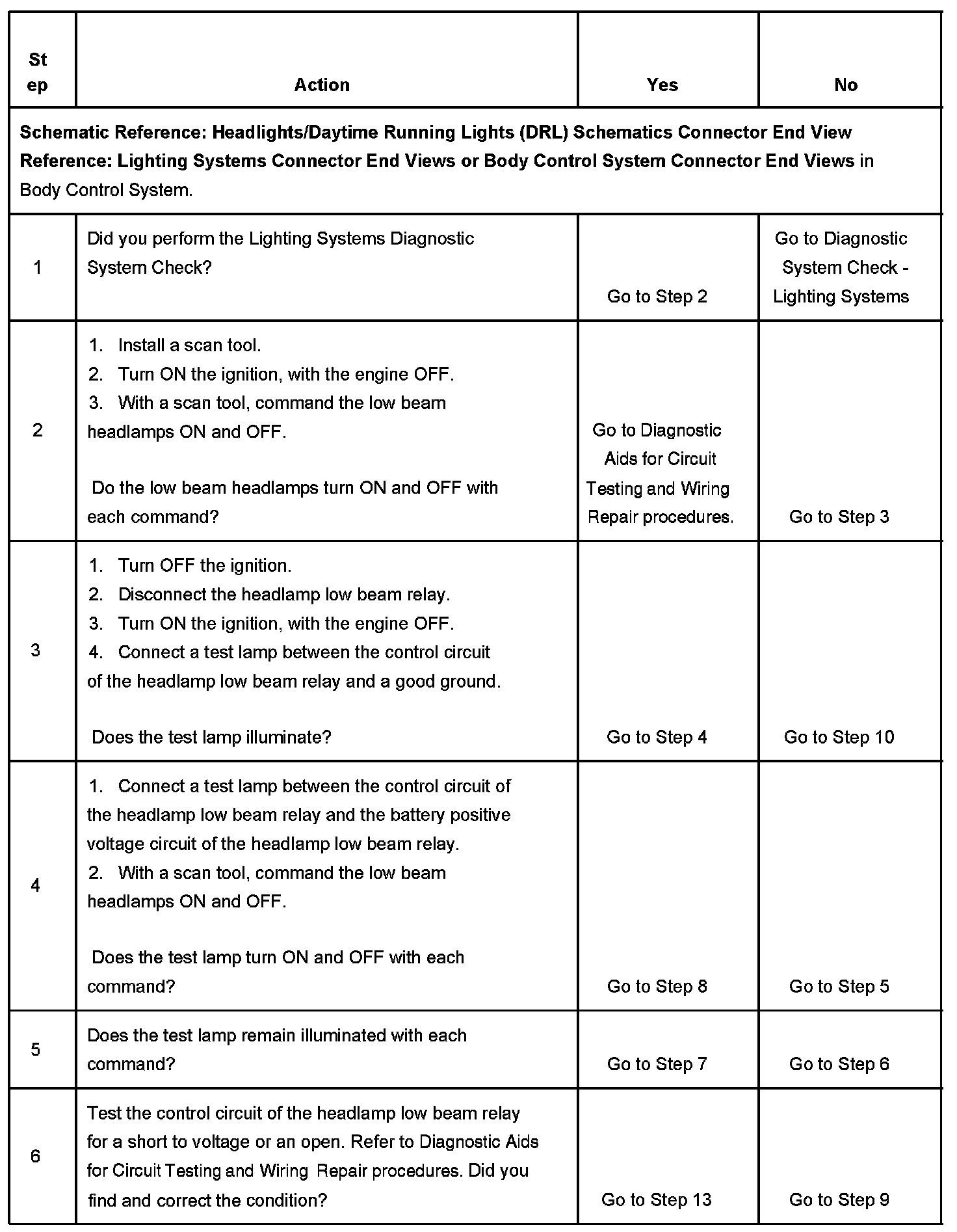 6. Tests if there is opposing voltage present or an open headlamp low beam relay control circuit.