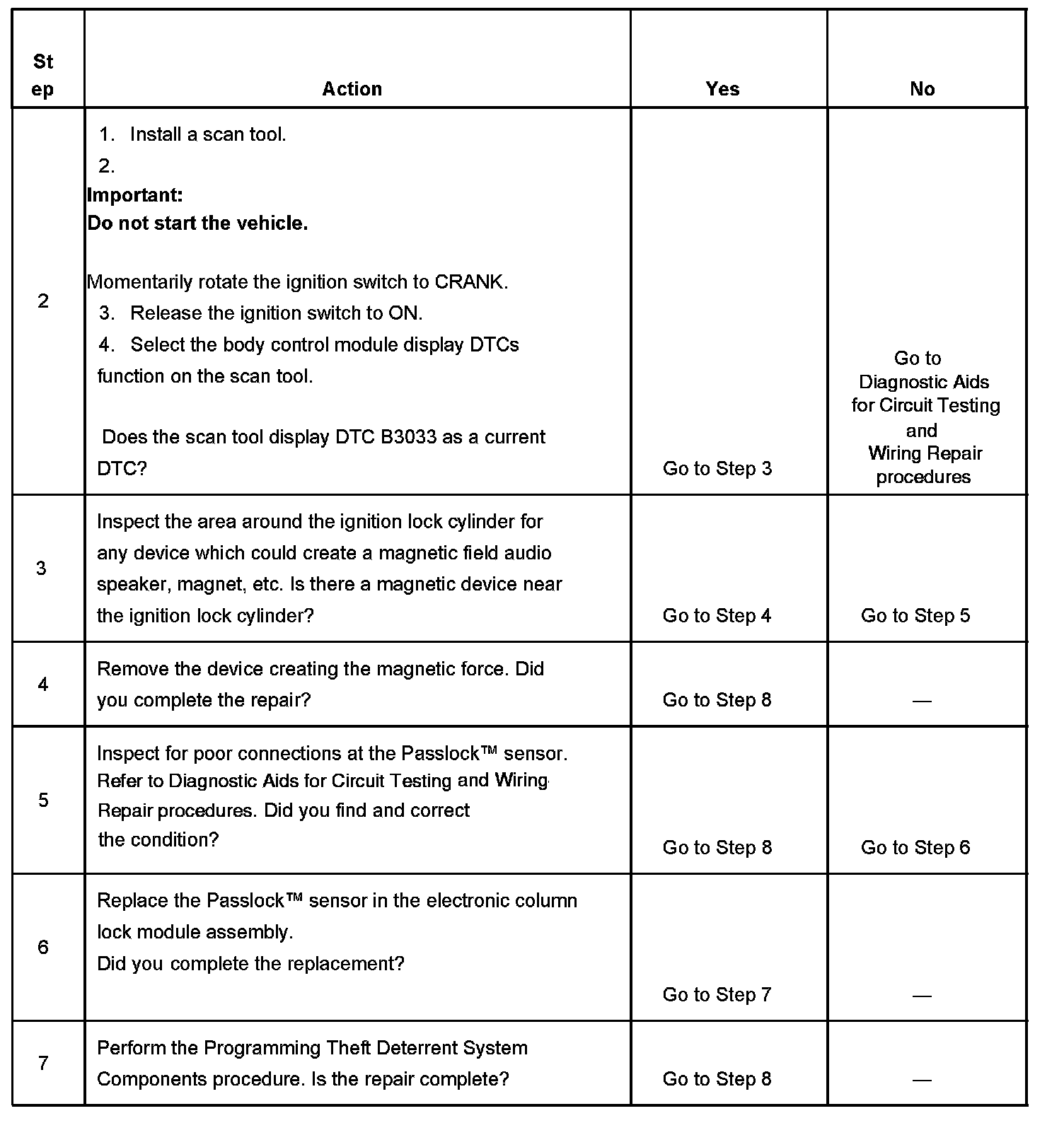 - Inspect the Passlock(TM) sensor harness for intermittent or poor connections. Refer to Diagnostic Aids for Circuit Testing and Wiring Repair procedures.
