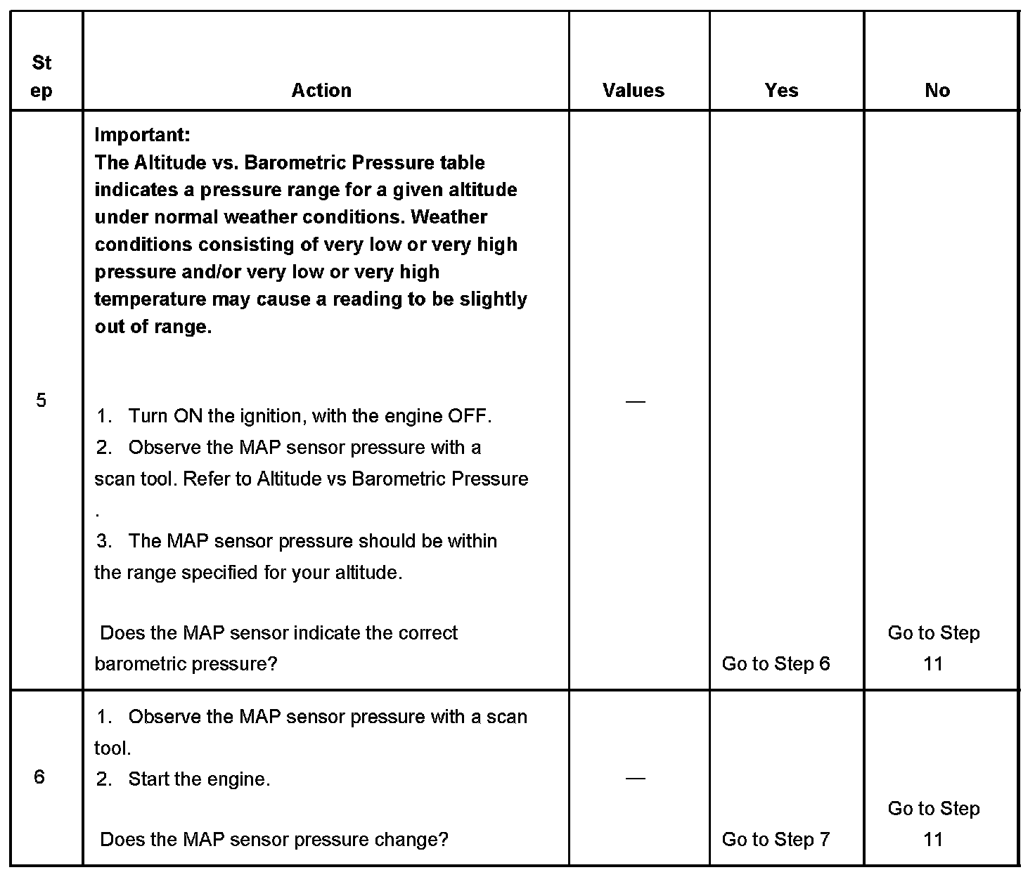 4. This step tests the MAP sensors ability to correctly indicate BARO.