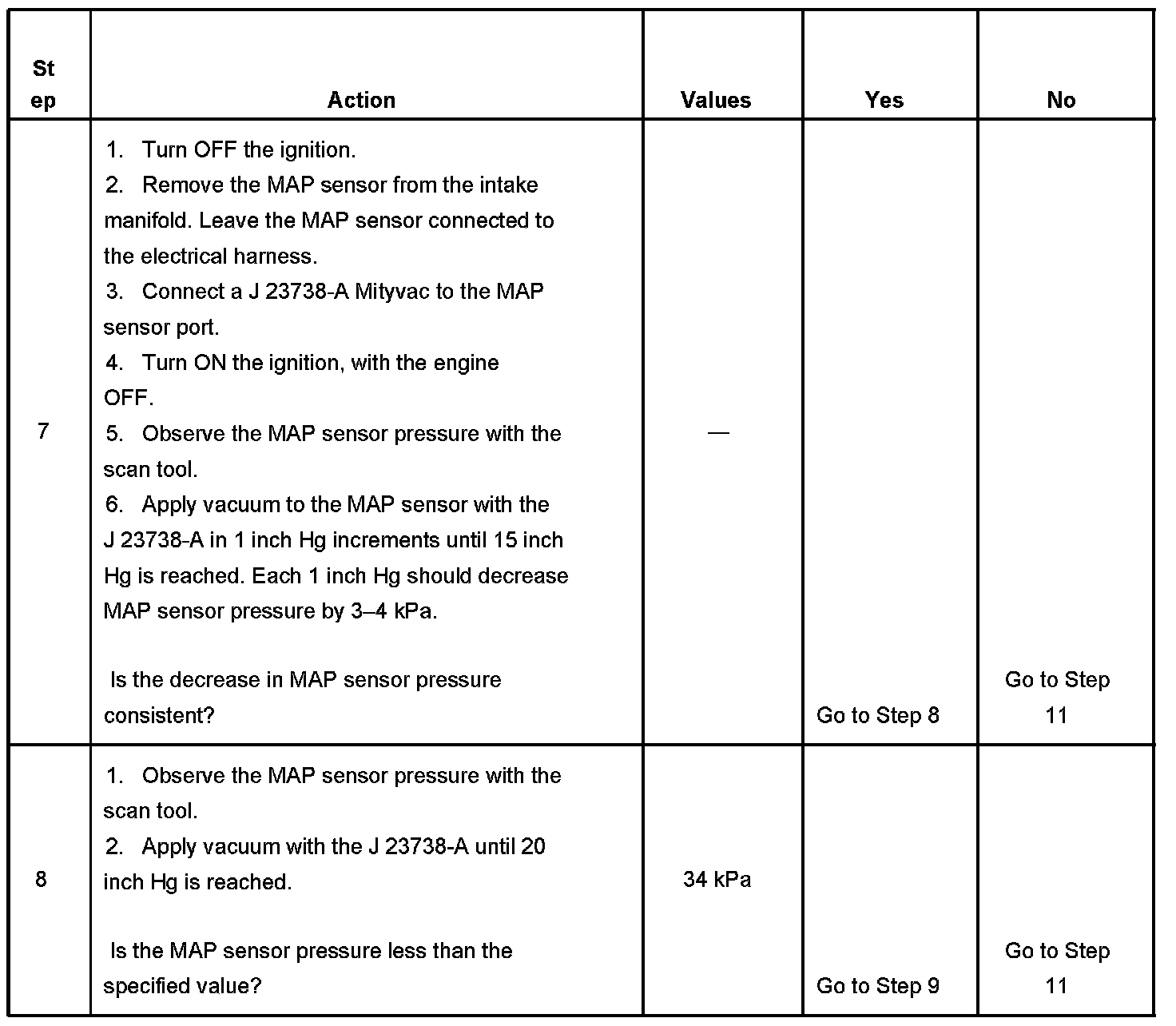 8. This step tests for a proper MAP sensor pressure with an applied vacuum.