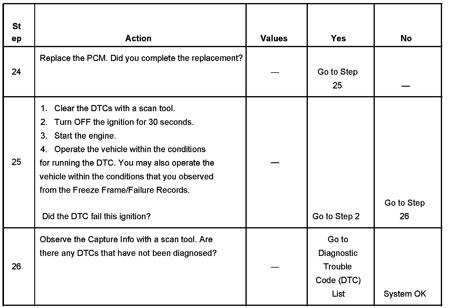 - A current DTC, Last Test Failed, clears when the diagnostic runs and passes.
