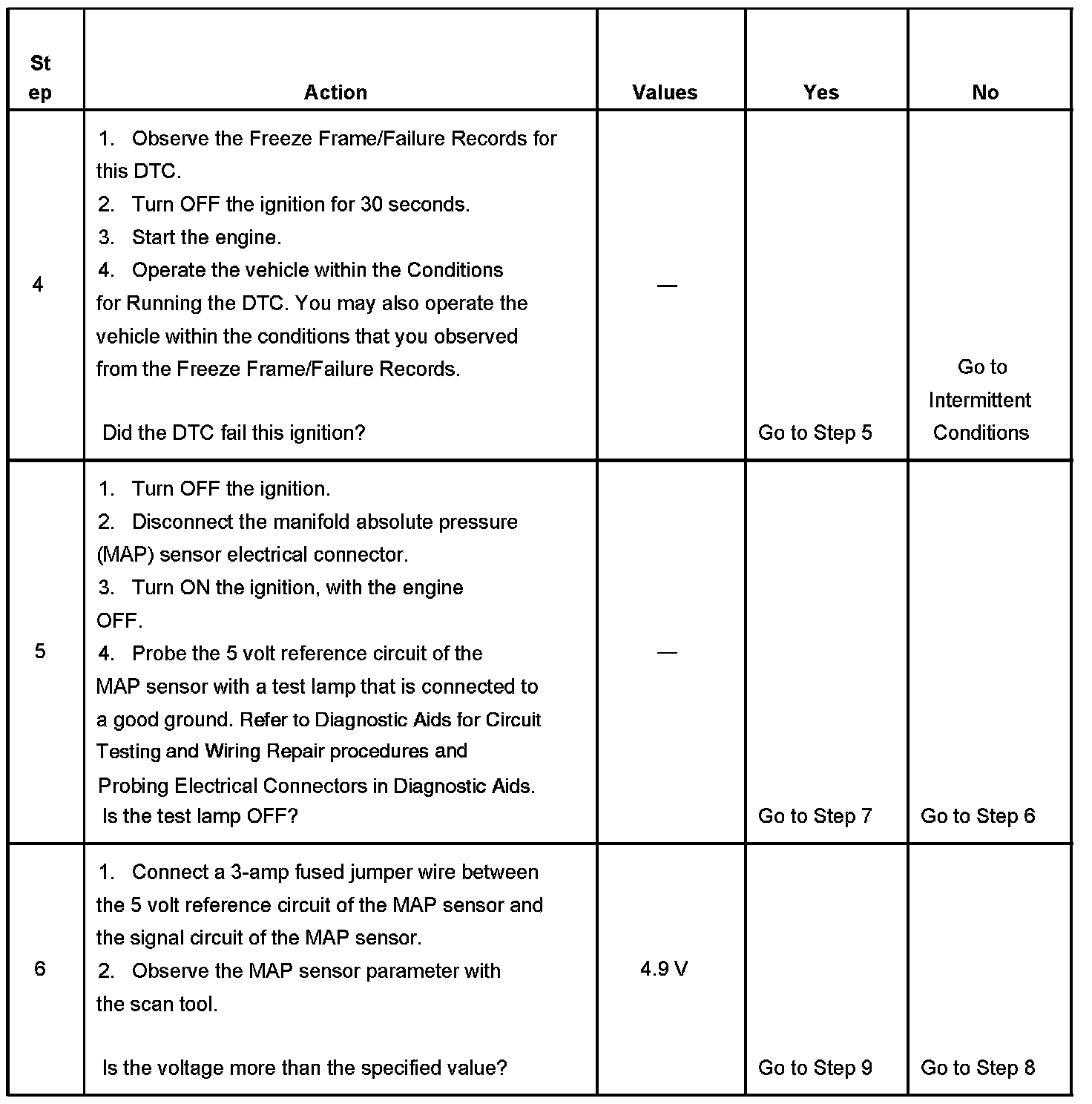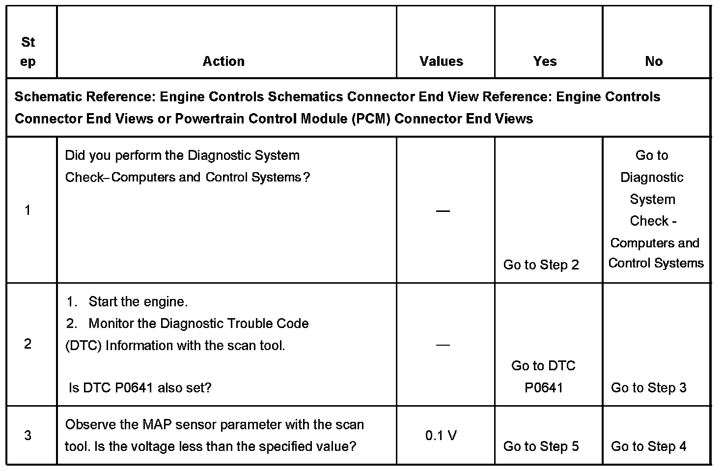 The PCM detects that the MAP sensor voltage is less than 0.10 volt for more than 4 seconds.