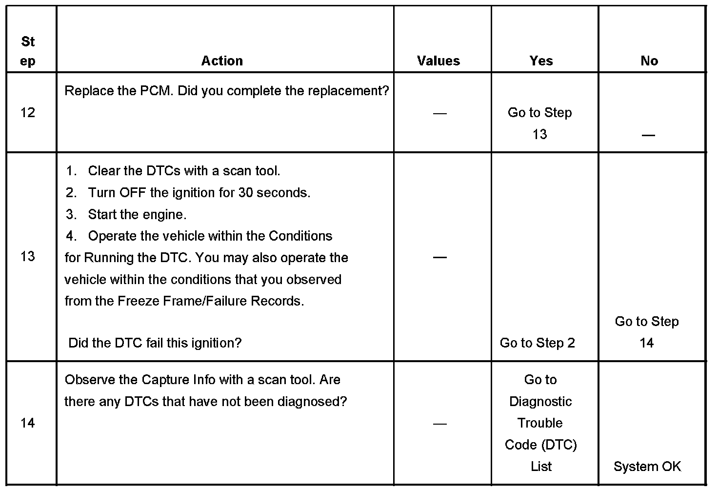 - A current DTC, Last Test Failed, clears when the diagnostic runs and passes.