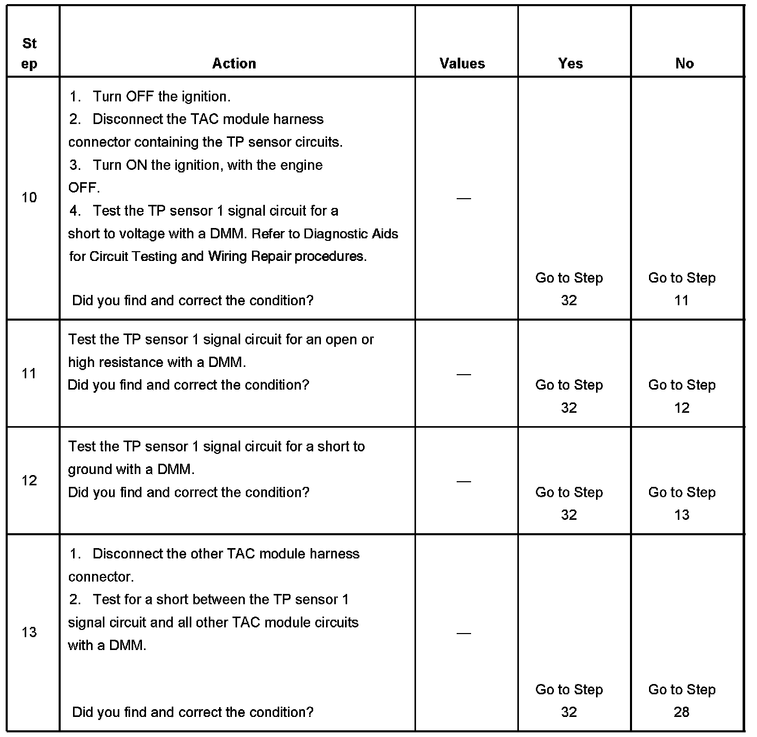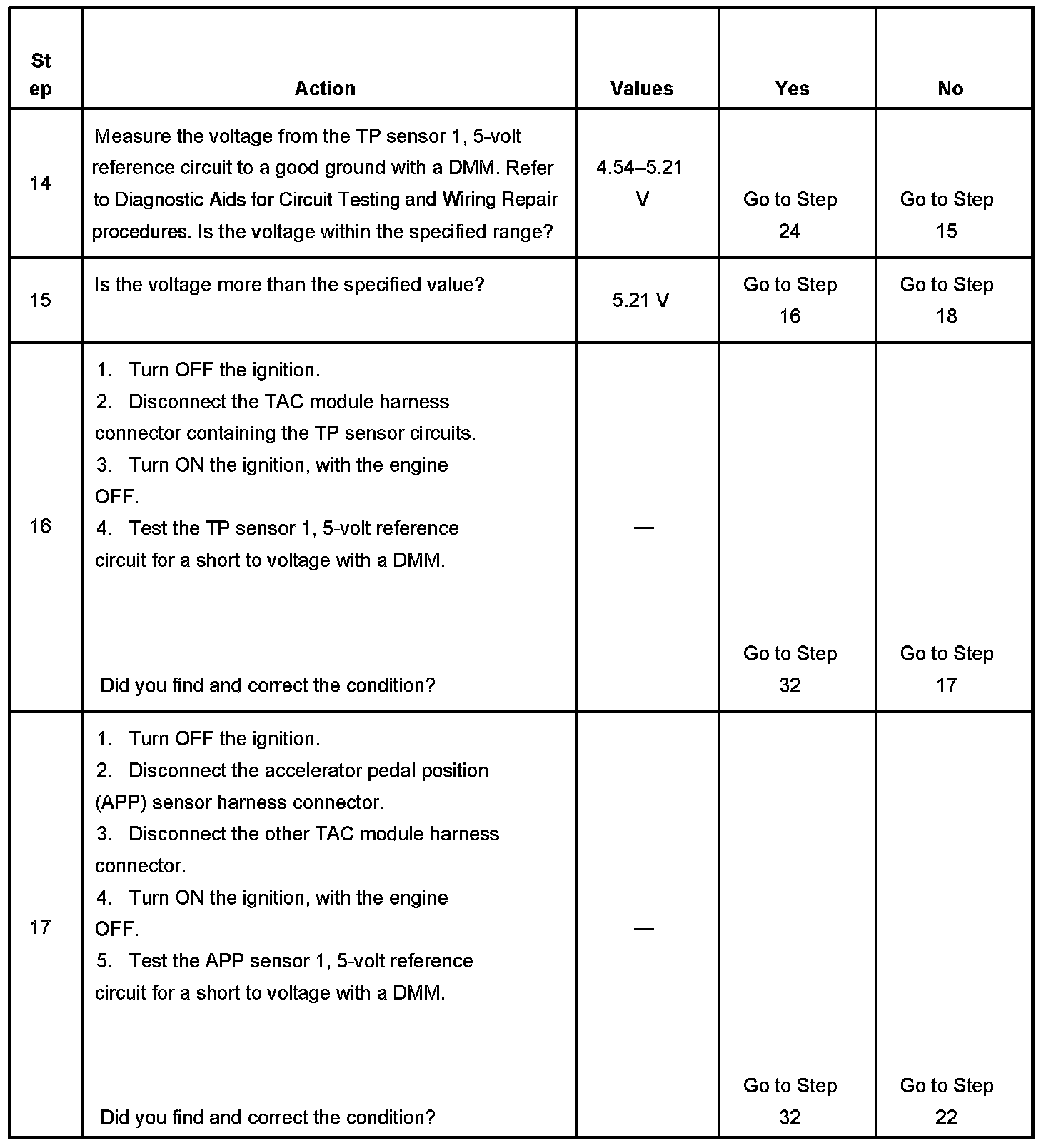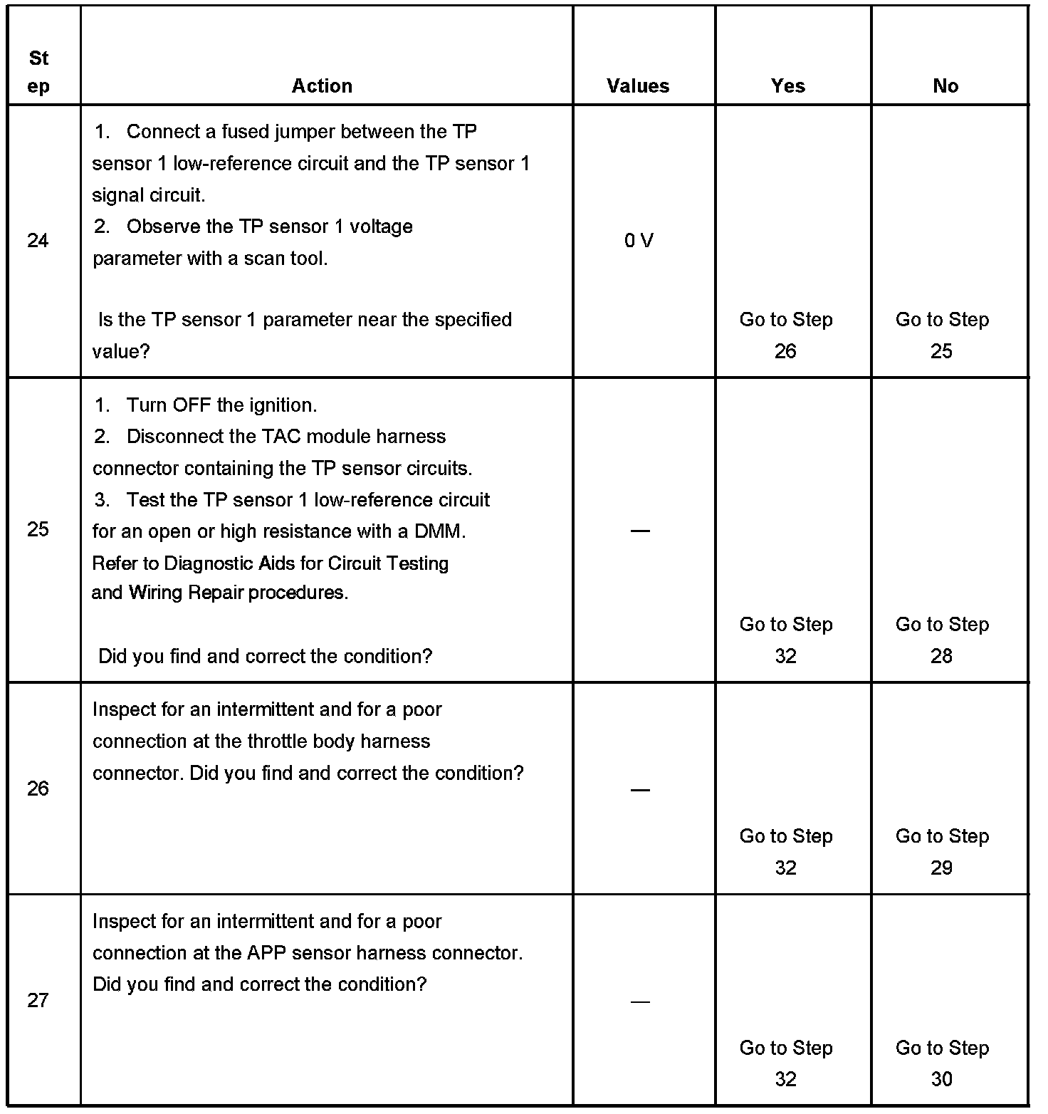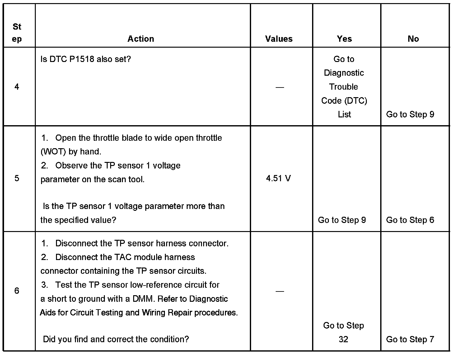 - The TP sensor 1 signal voltage is less than 0.37 volt or more than 4.51 volts.