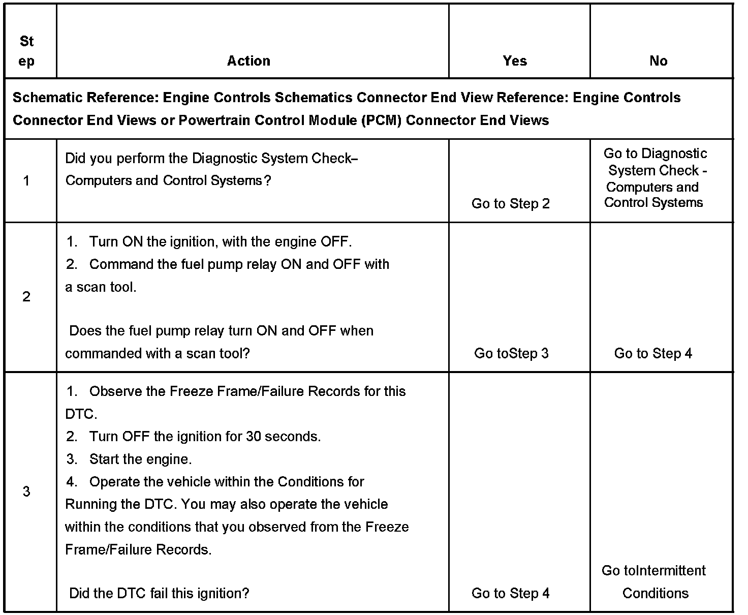 The control module monitors the voltage on the fuel pump relay control circuit. If the control module detects an incorrect voltage on the fuel pump relay control circuit, a fuel pump relay control DTC sets.