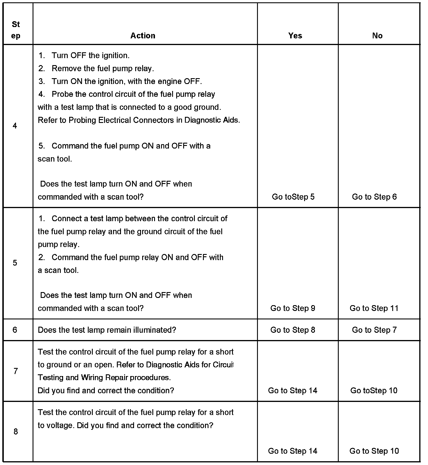 6. This step tests if the voltage is constantly being applied to the control circuit of the fuel pump relay.