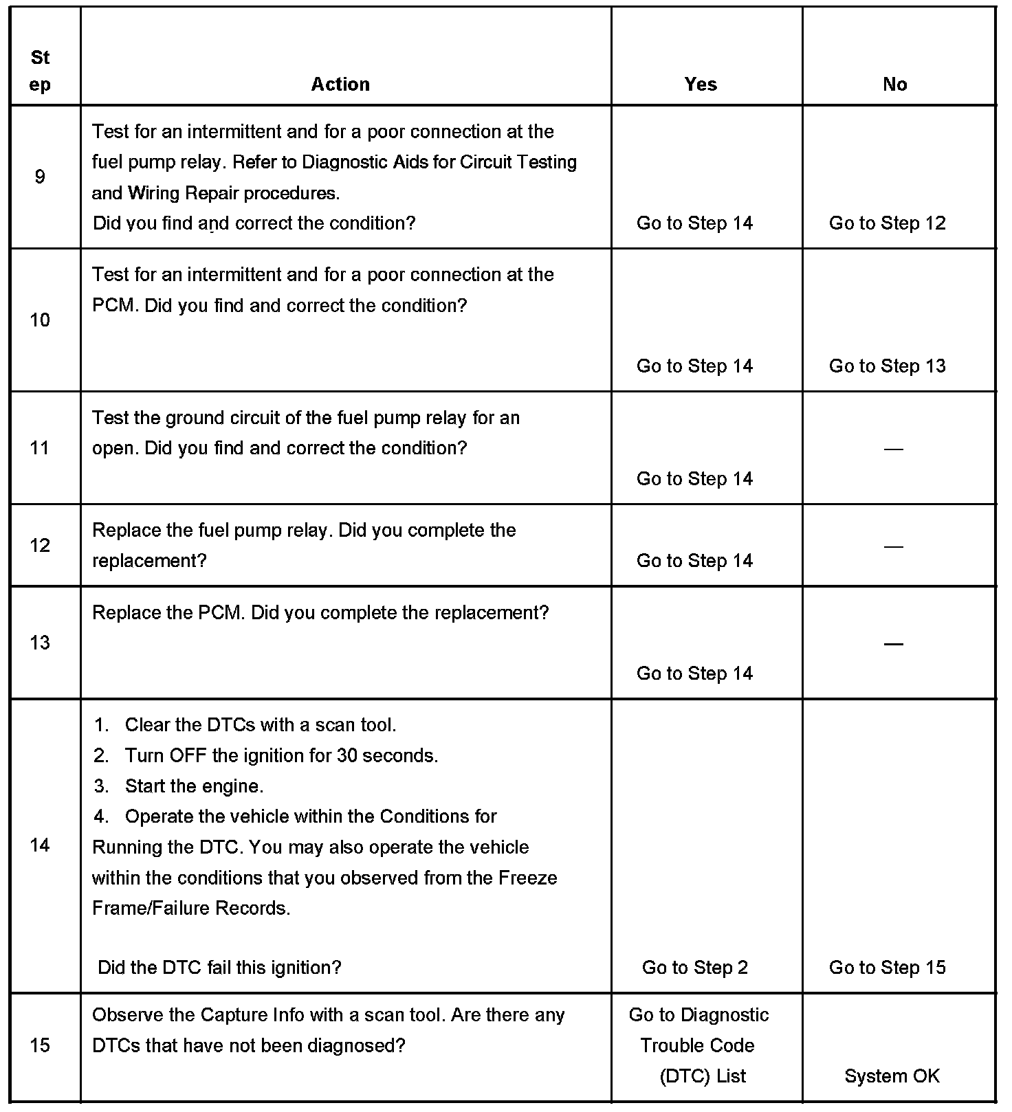 5. This step tests for an open in the ground circuit to the fuel pump relay.