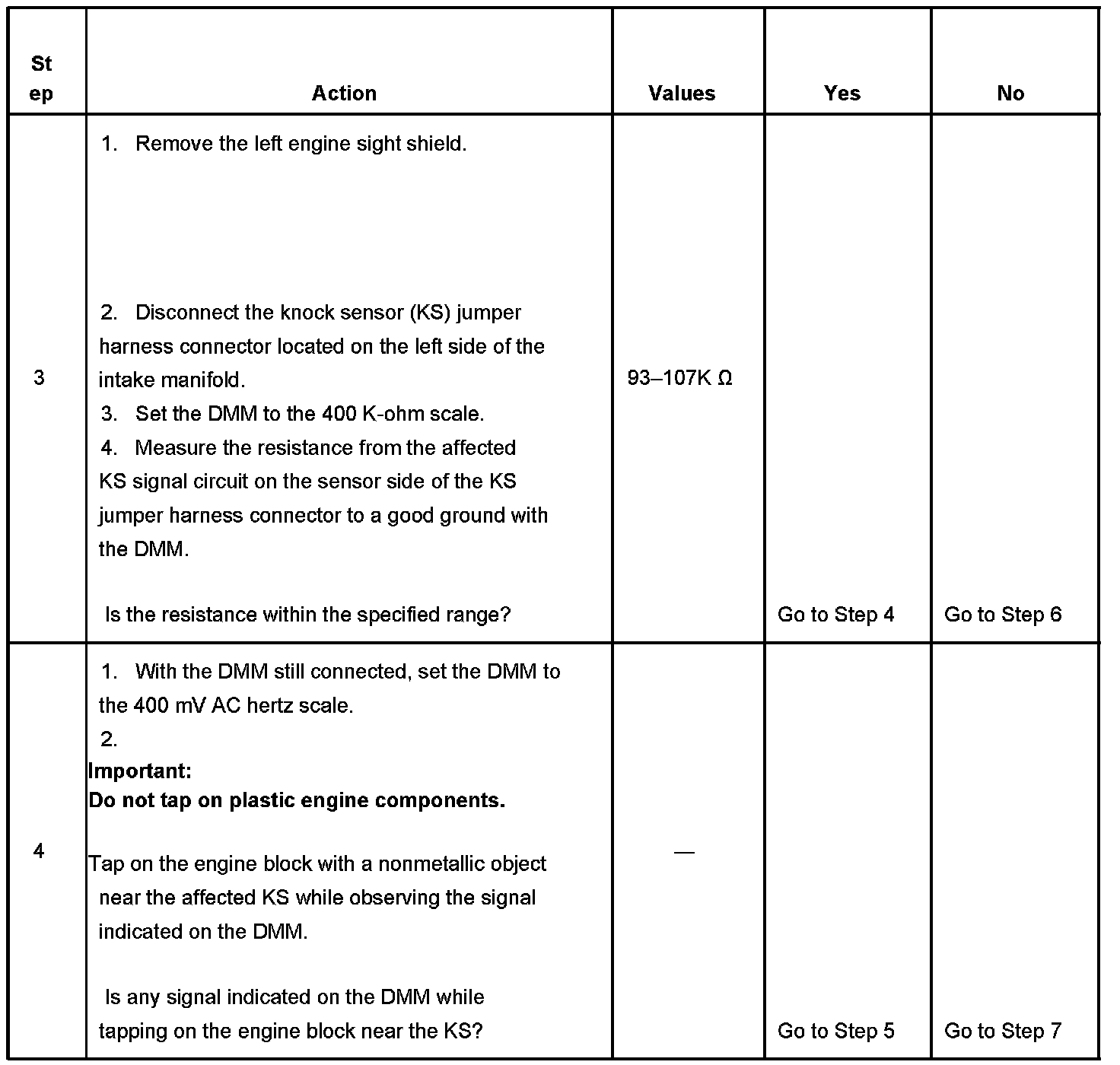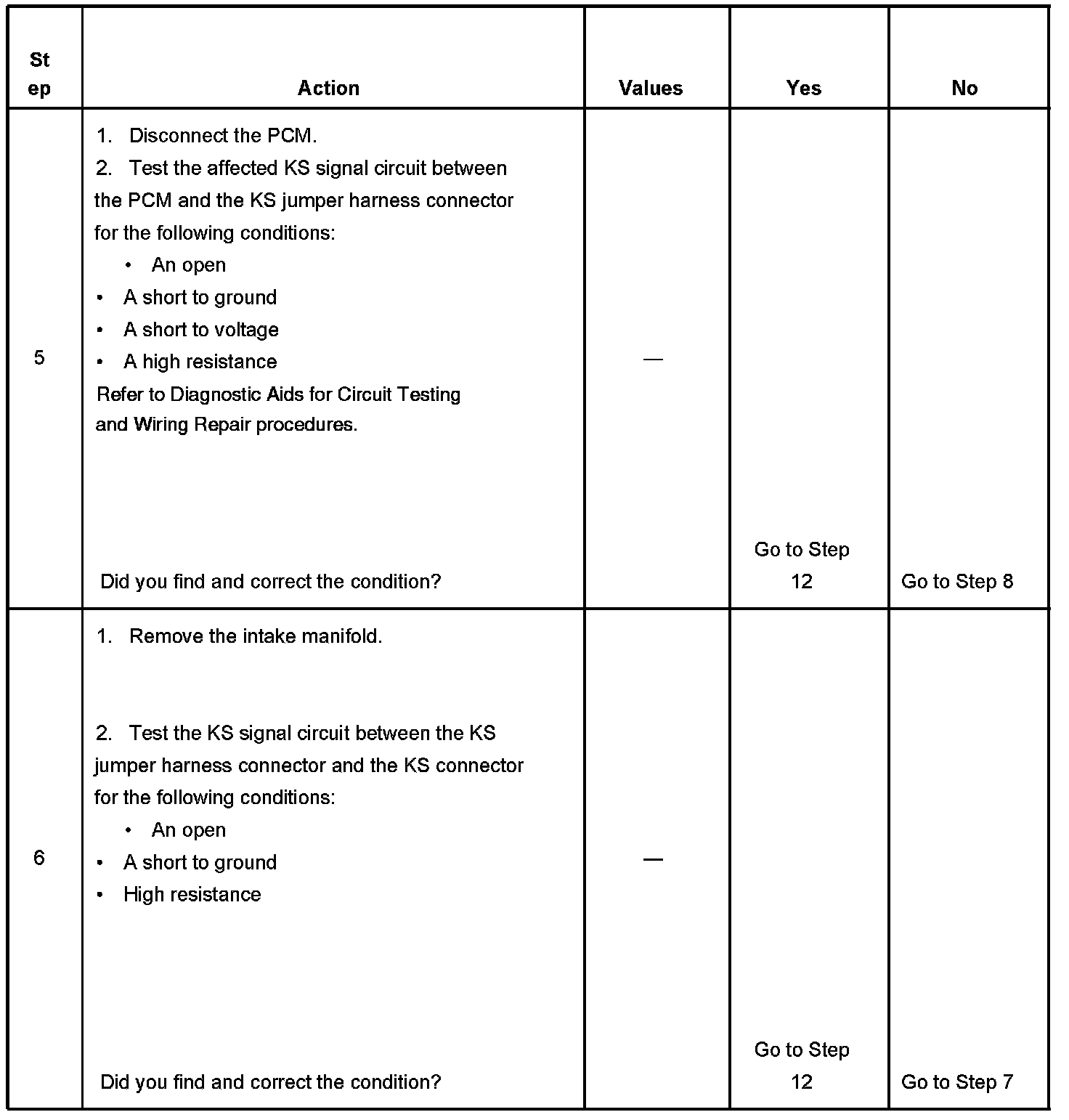 - The PCM detects that the KS signal is within the calculated voltage range or the KS signal is not present.