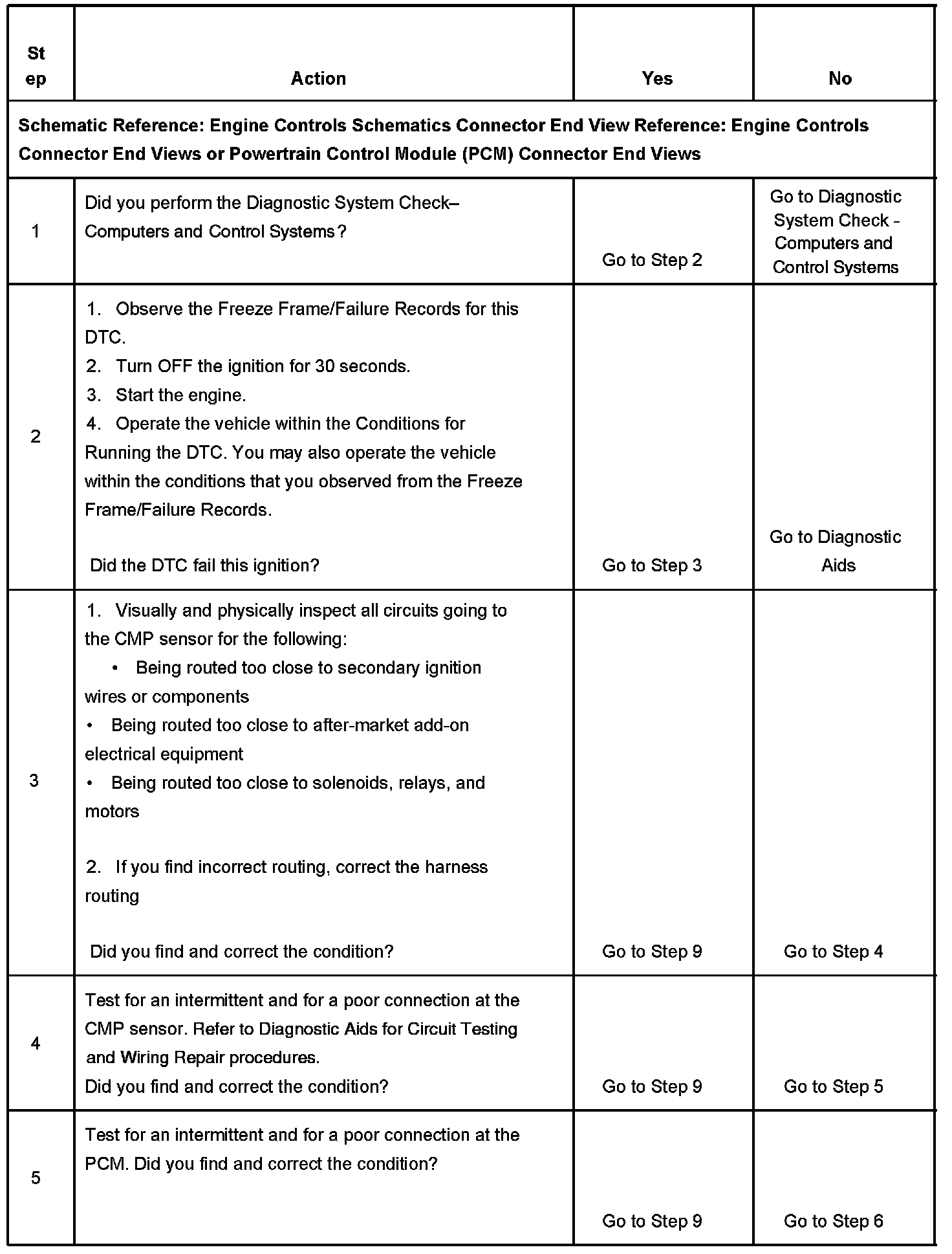 CIRCUIT DESCRIPTIONThe camshaft position (CMP) sensor works in conjunction with a 1 X reluctor wheel on the camshaft. The powertrain control module (PCM) provides a 12 volt reference to the CMP sensor as well as a low reference and a signal circuit.