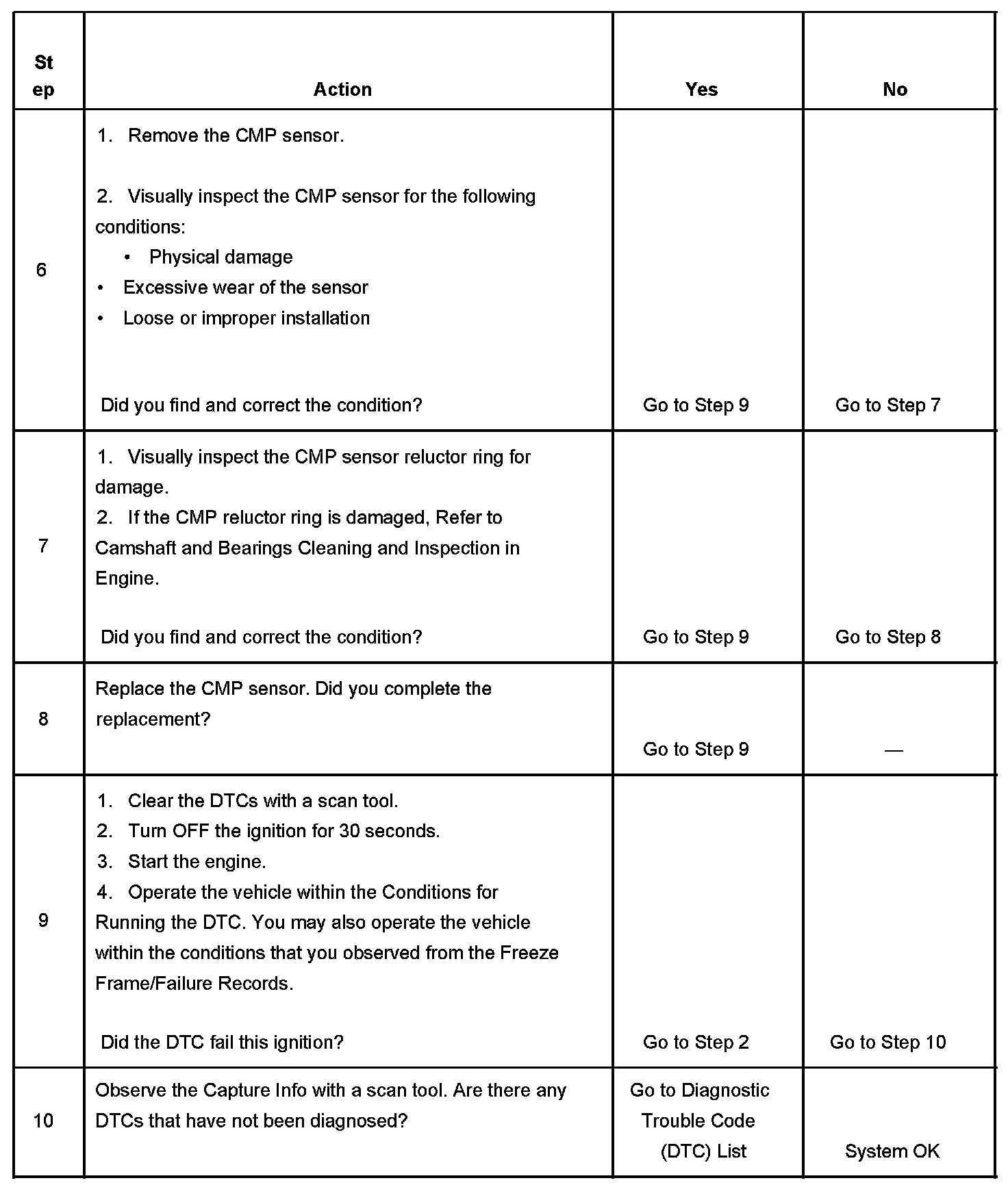 6. Damage to the face of the sensor could indicate foreign material passing between the CMP sensor and the reluctor wheel. This condition would cause this DTC to set. Damage to the reluctor wheel would affect the CMP sensor output.