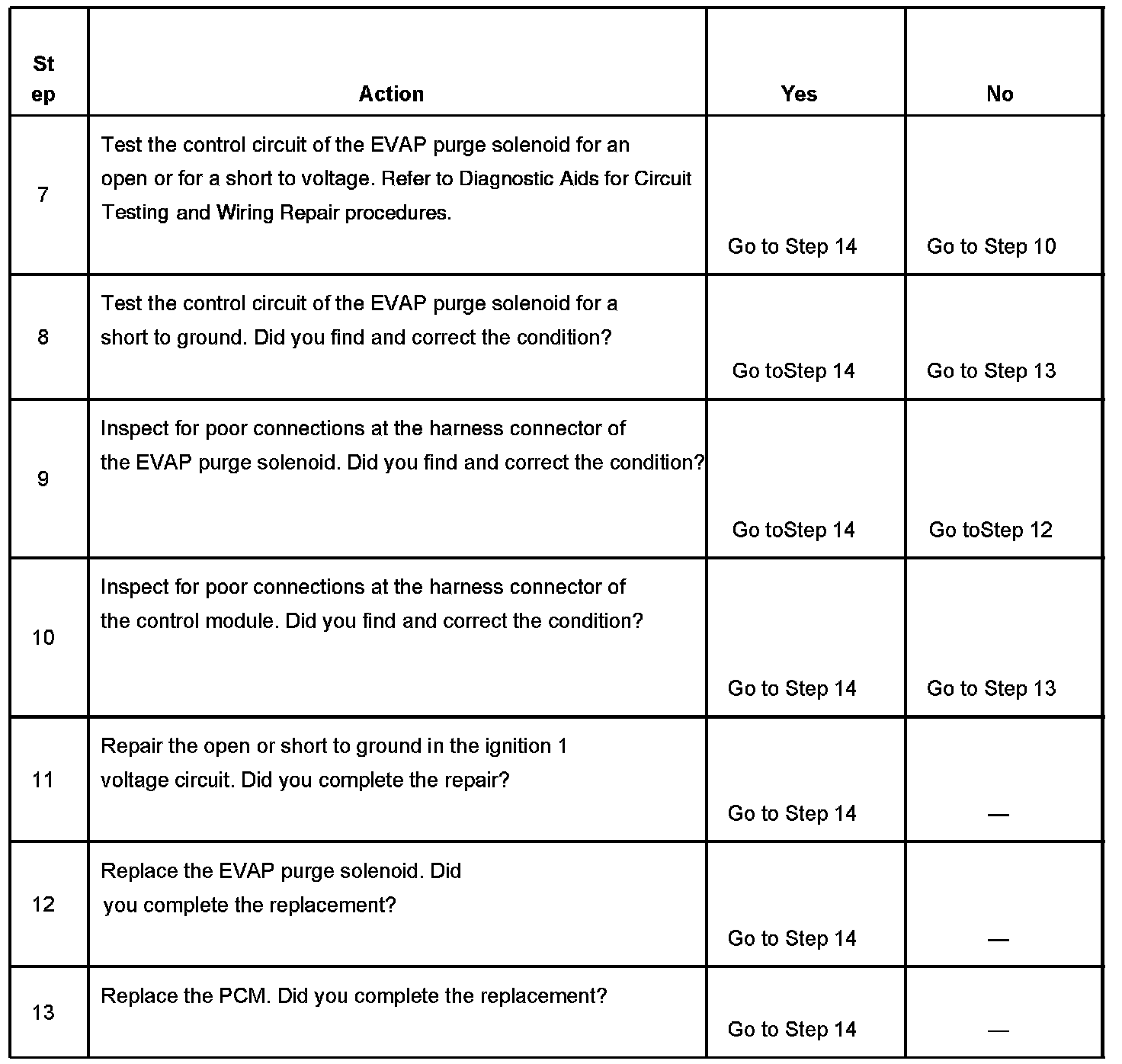 6. This step tests if a ground is constantly being applied to the EVAP purge solenoid.
