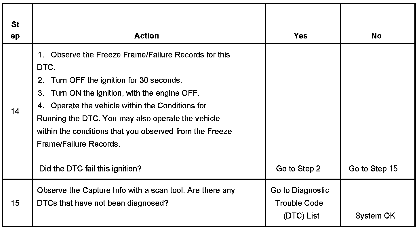 - The control module records the operating conditions at the time the diagnostic fails. The first time the diagnostic fails, the control module stores this information in the Failure Records. If the diagnostic reports a failure on the second consecutive ignition cycle, the control module records the operating conditions at the time of the failure. The control module writes the operating conditions to the Freeze Frame and updates the Failure Records.