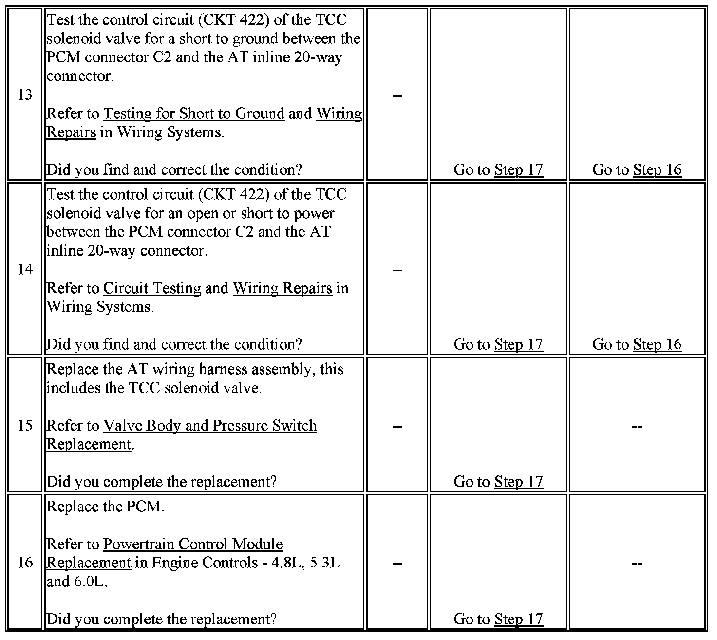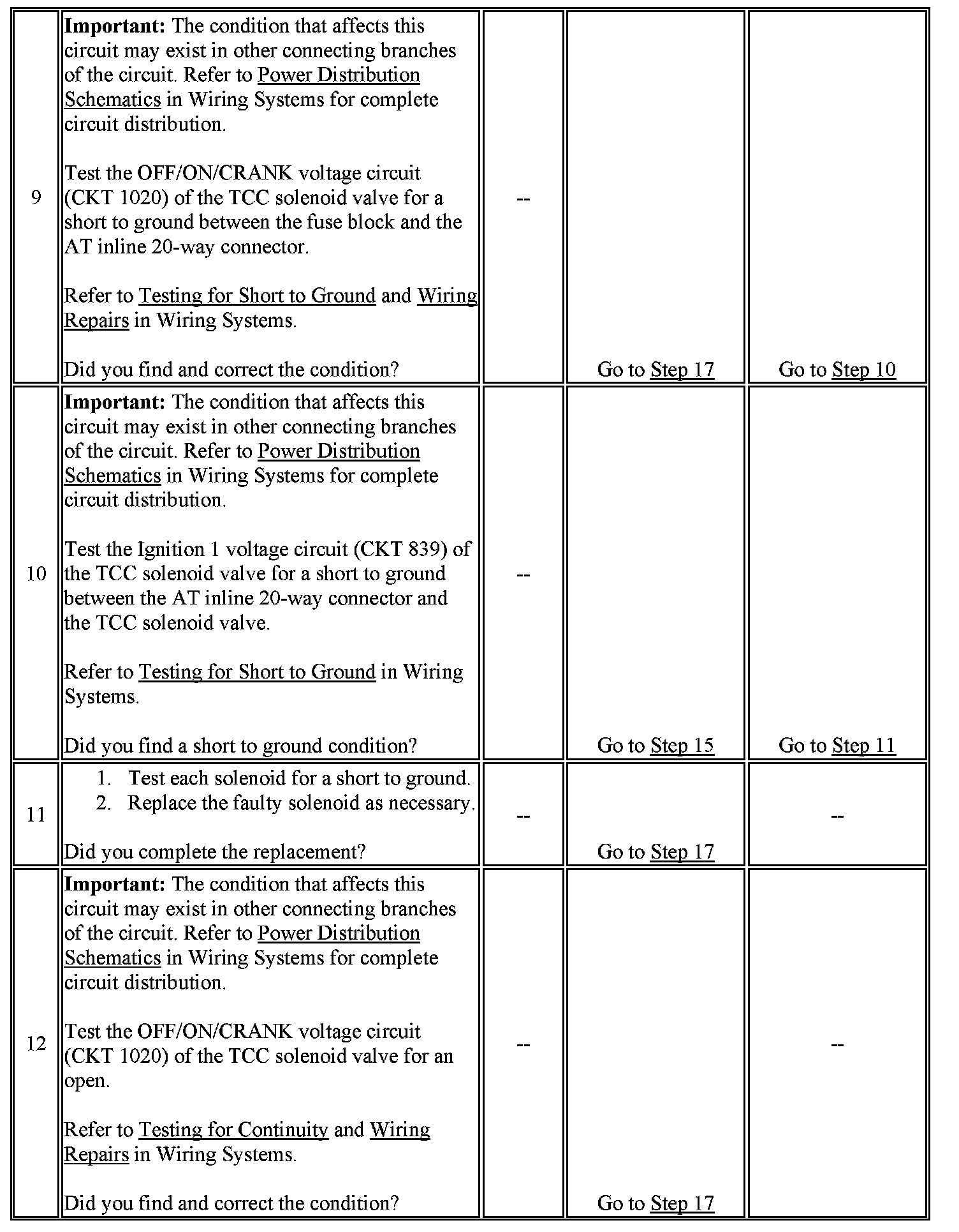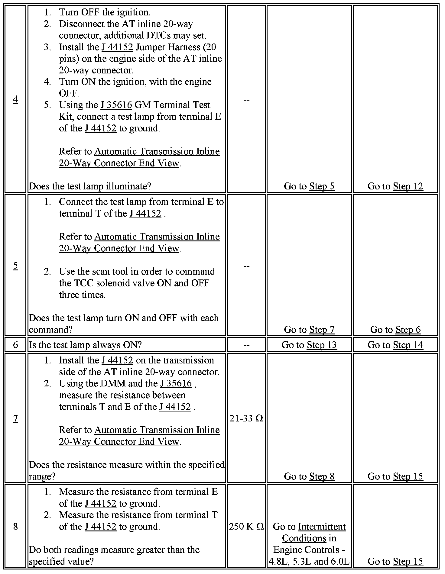7. This step tests the resistance of the TCC solenoid valve and the automatic transmission (AT) wiring harness assembly.