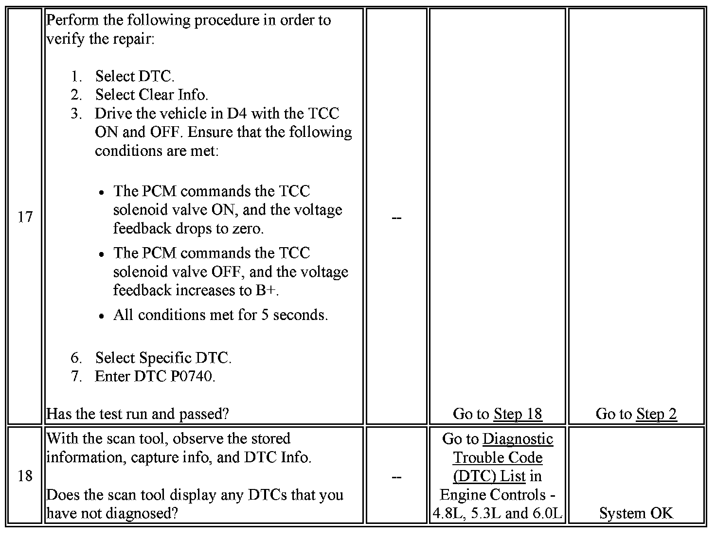 When the PCM detects a continuous open, short to ground or short to power in the TCC solenoid valve circuit, then DTC P0740 sets. DTC P0740 is a type B DTC.