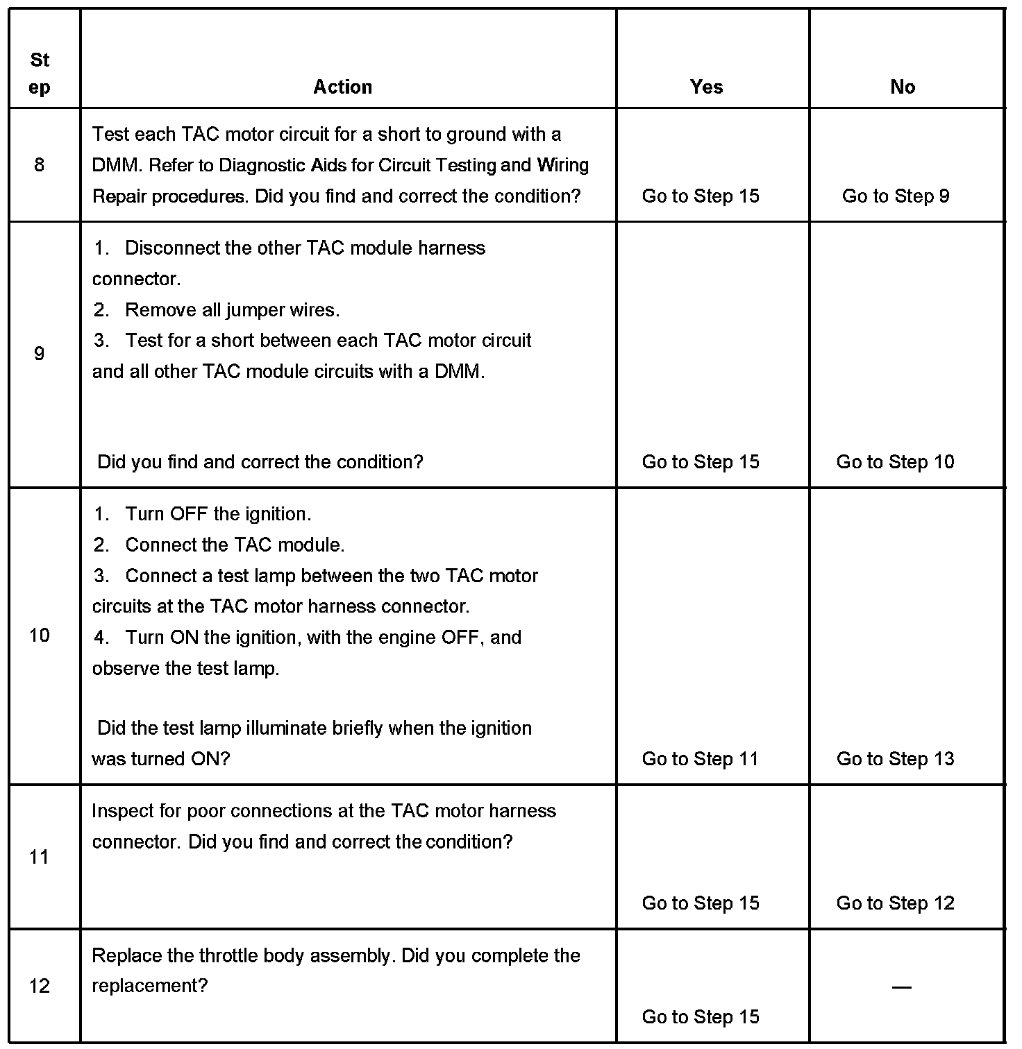 The numbers below refer to the step numbers on the diagnostic table.