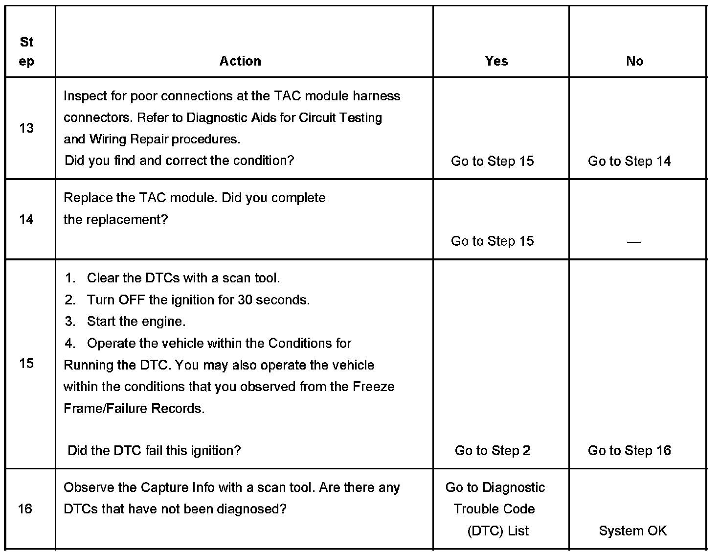 - When the TAC module detects a condition within the TAC system, more than 1 TAC system related DTC may set. This is due to the many redundant tests run continuously on this system. Locating and repairing an individual condition may correct more than 1 DTC. Disconnecting components during testing may set additional DTCs. Remember this if you review the stored information in Capture Info.