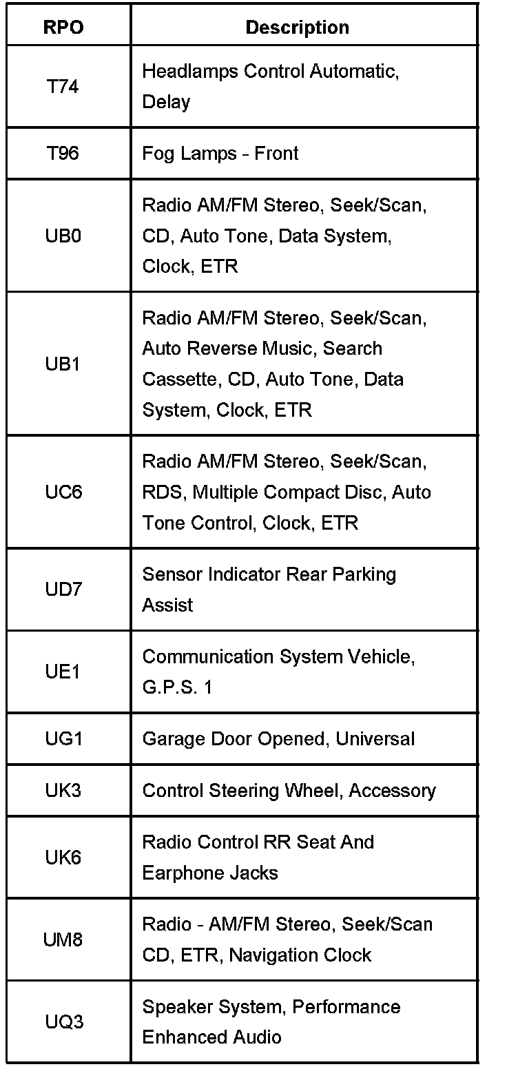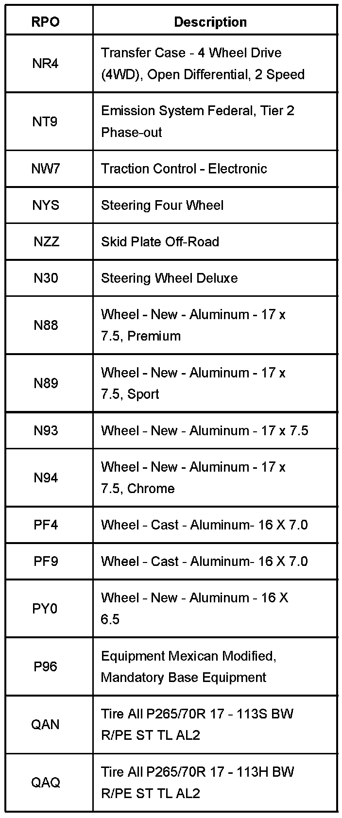 RPO Code List Part 13: