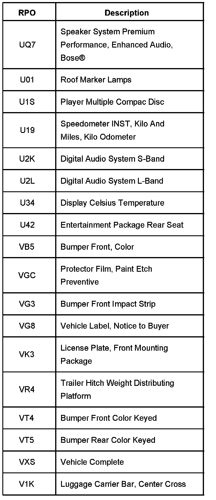 RPO Code List Part 1: