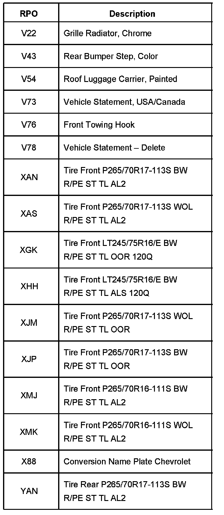 RPO Codes