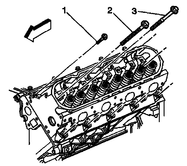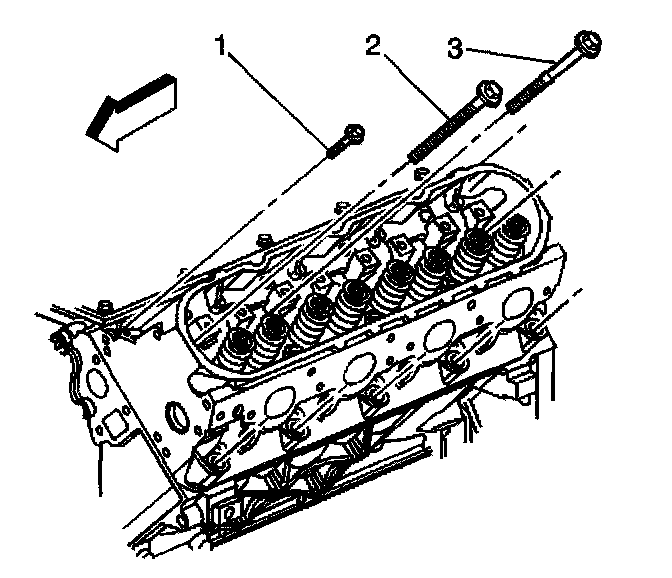 5. Remove and discard the cylinder head bolts (1, 2, 3).