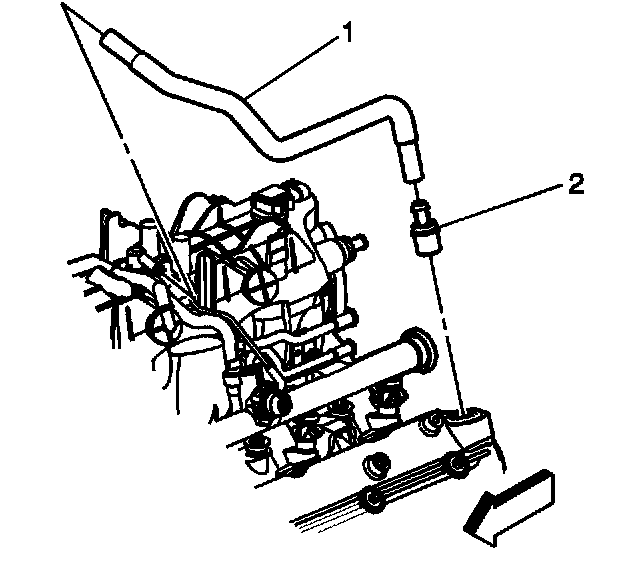 6. Install the Positive Crankcase Ventilation (PCV) valve (2) and hose (1).