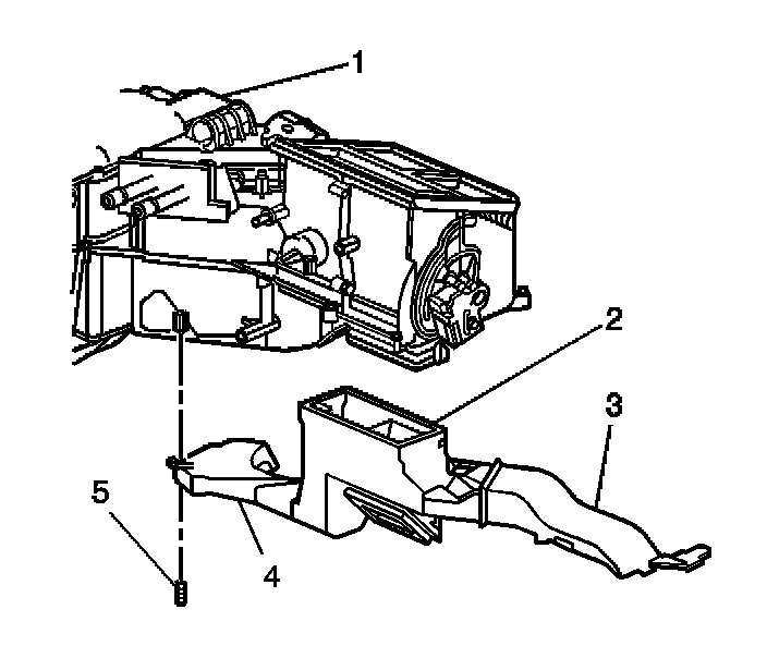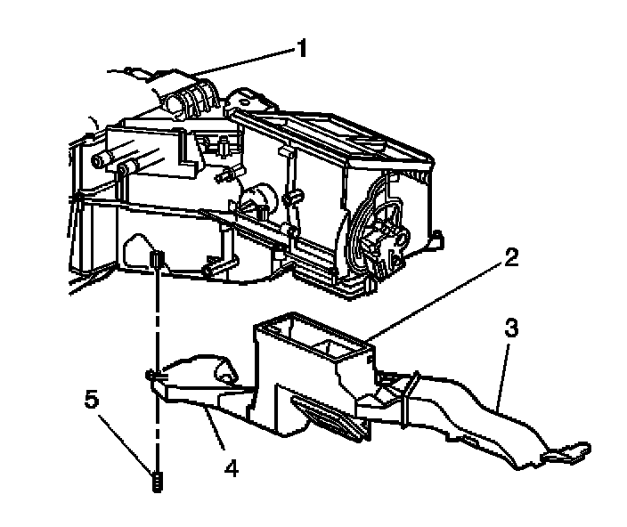 1. Install the left floor air outlet duct (1) to the HVAC module (2).