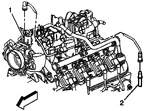 2. Disconnect the EVAP tube from the EVAP canister purge solenoid (1).