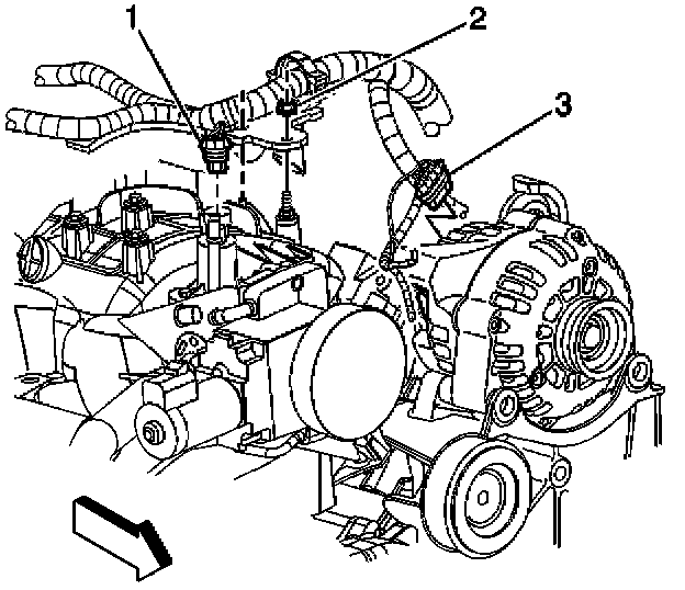 3. Disconnect the evaporative emission (EVAP) purge solenoid electrical connector (1).