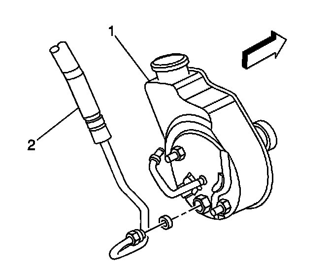 7. Install the power steering pressure hose (2) to the power steering pump.